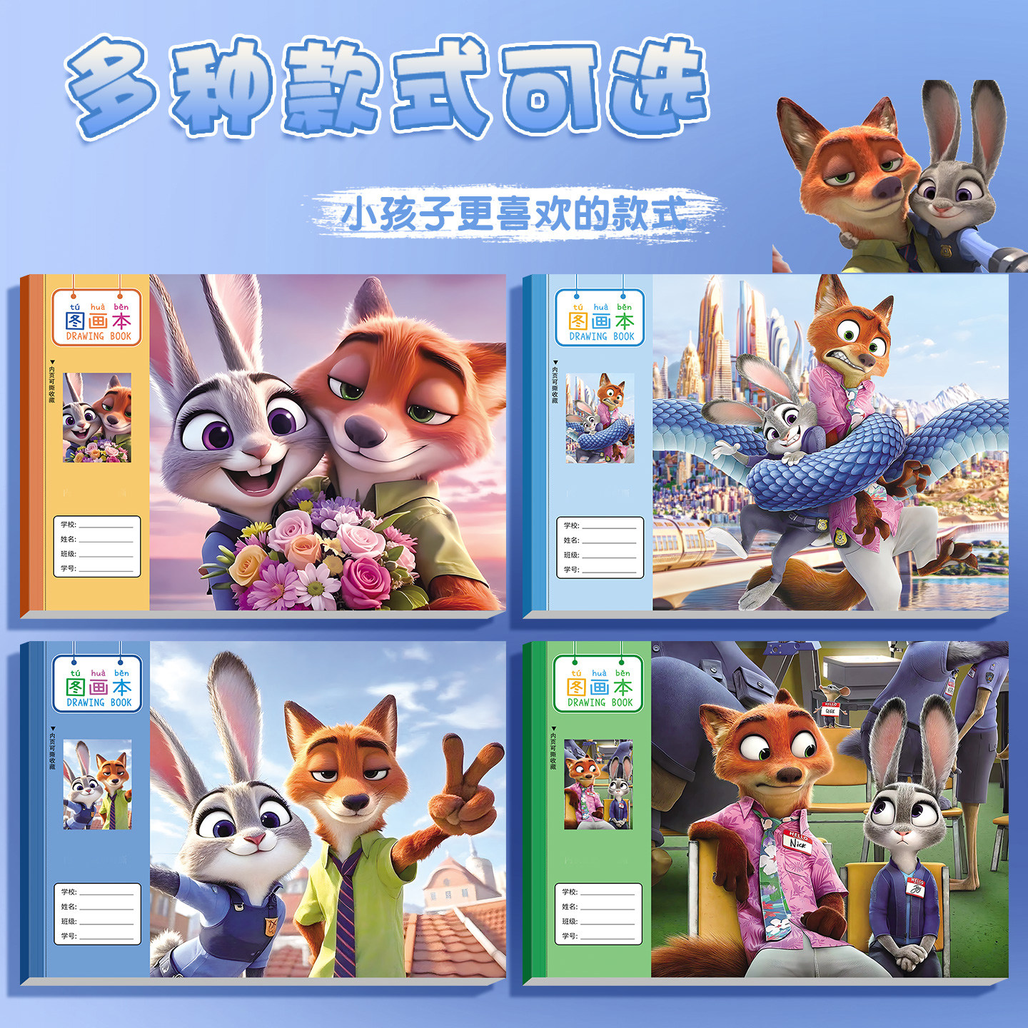 新款疯狂动物城周边颜值图朱迪尼克学生画本A4加厚图画本大号