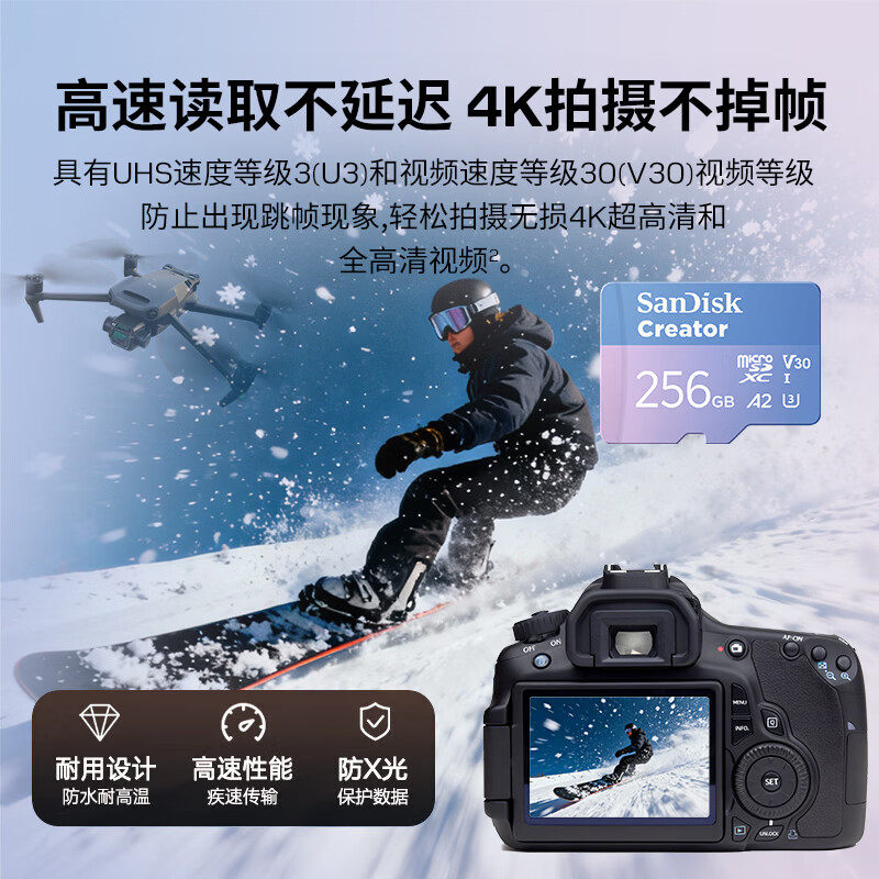 SanDisk闪迪创作者粉卡闪存TF卡256G大疆无人机适用5.3K高清拍摄
