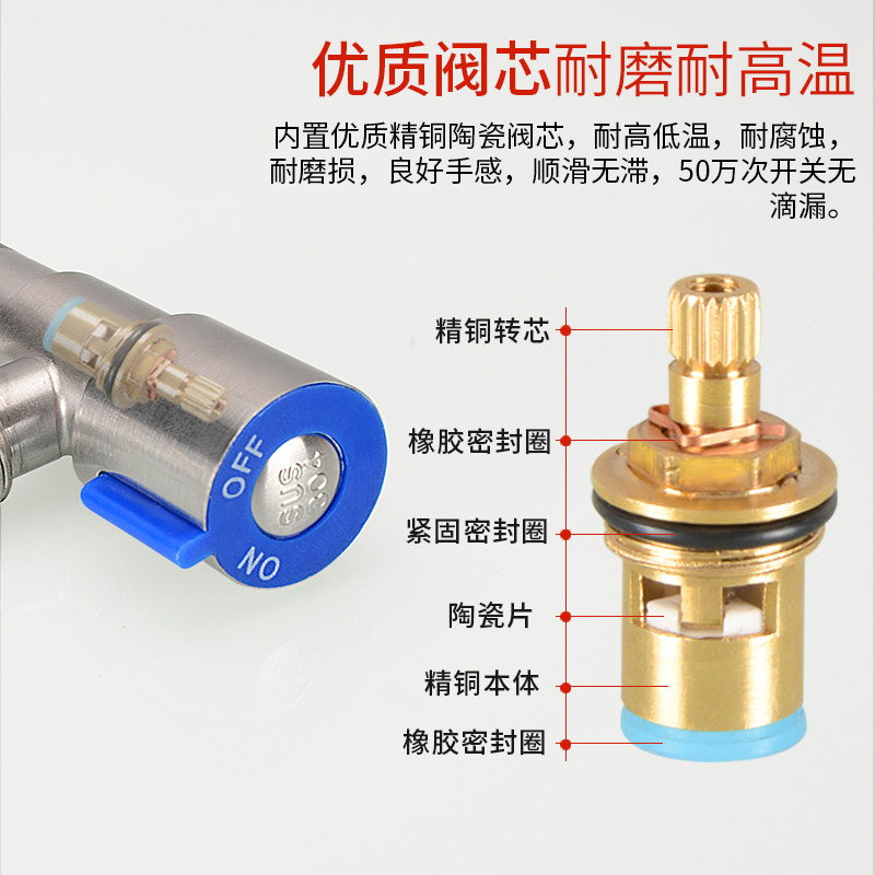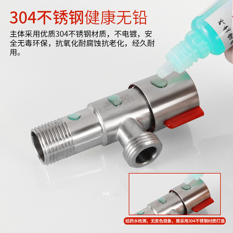 冷热水304不锈钢三角阀家装4分加厚防爆卫生间一进多出单控止水阀