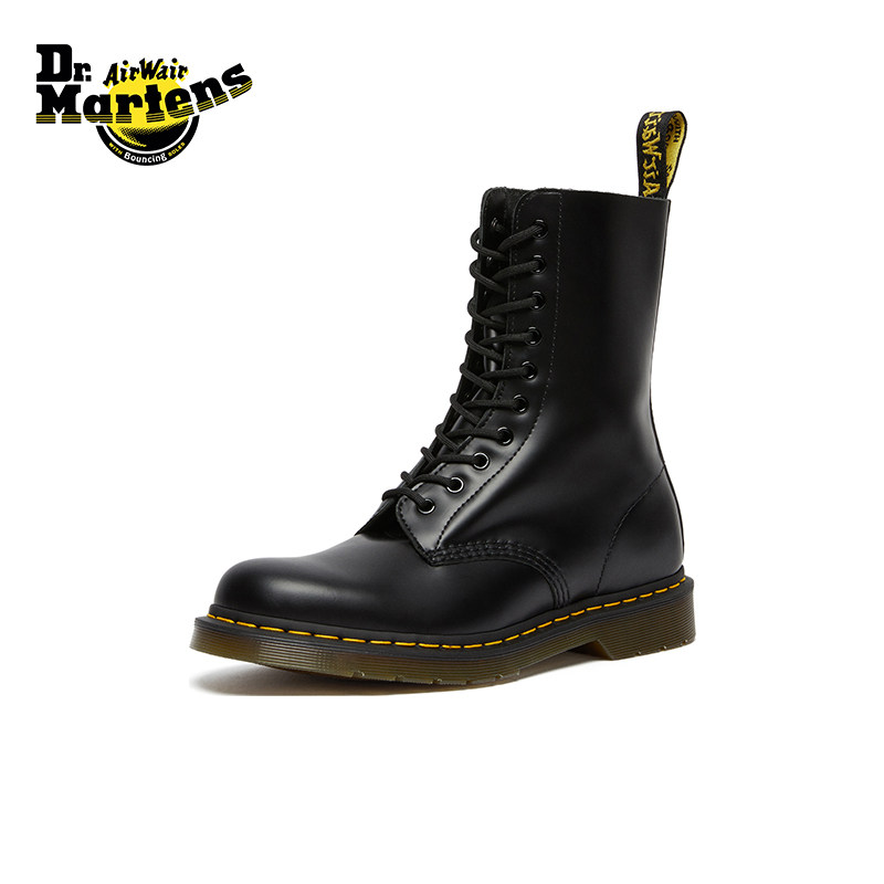 Dr.Martens马丁博士1490英伦冬显瘦酷飒骑士靴光面皮黑色女马丁靴