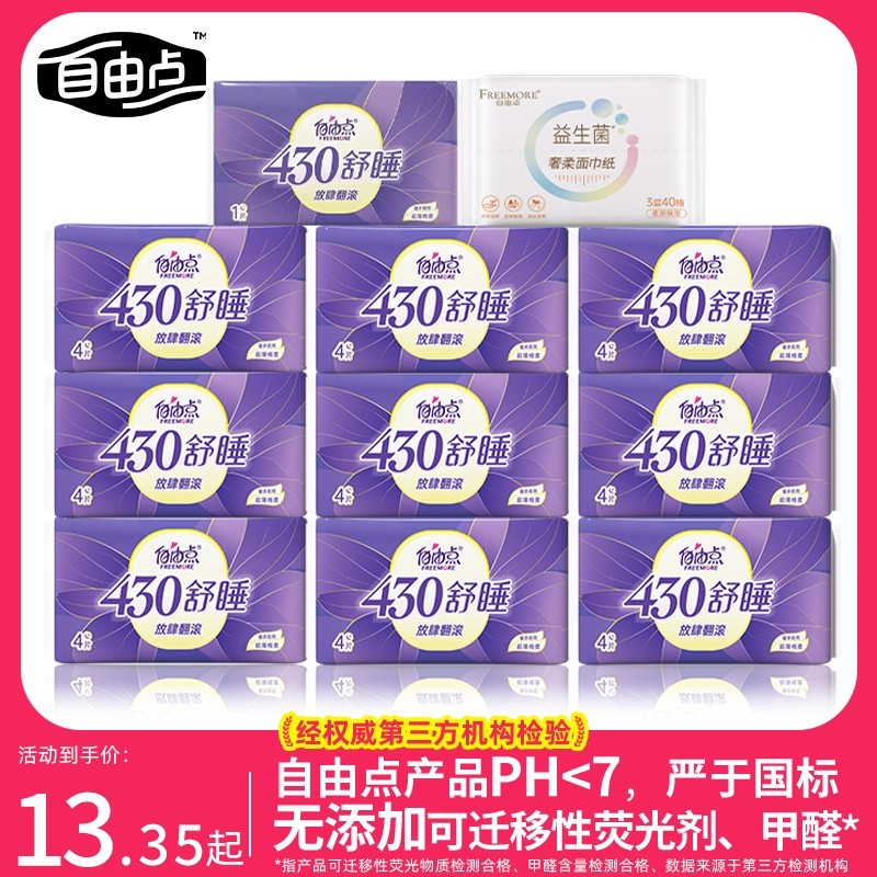 自由点卫生巾超长430夜用姨妈巾加宽加长官方旗舰店正品日用超薄