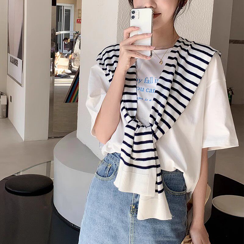 经典条纹外搭披肩女春夏百搭假领子装饰坎肩空调房搭肩多功能围巾