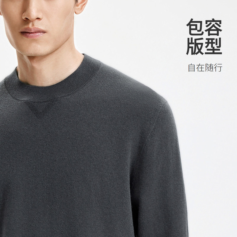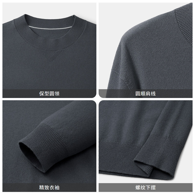 【含50%羊毛】金利来秋冬男士保暖舒适宽松圆领套头毛衣针织衫男