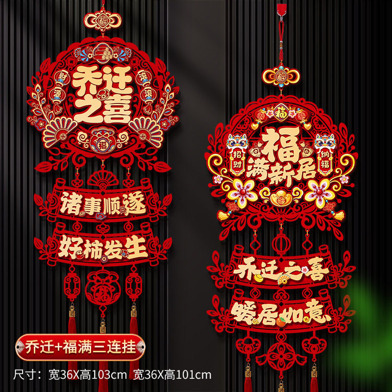 乔迁之喜装饰入户门挂新房搬家布置喜庆节日挂件新居客厅福字摆件