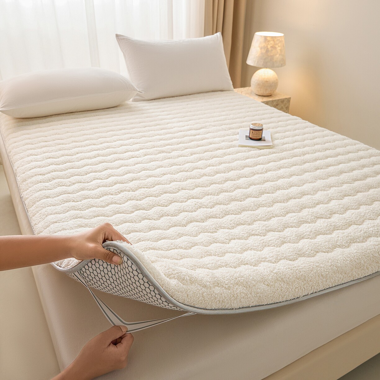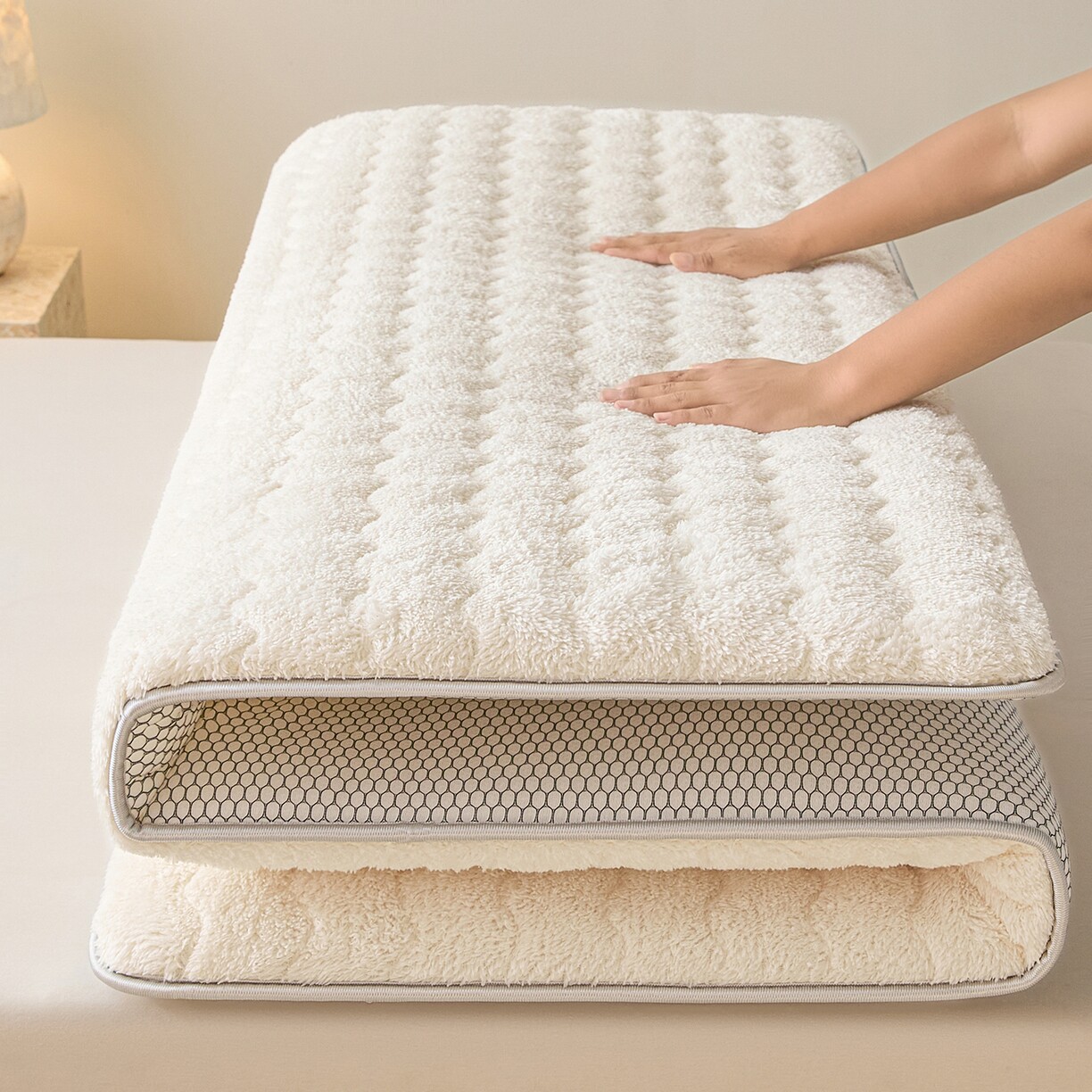 加厚羊羔绒床垫床褥毛绒床垫夹棉保暖床褥家用软垫卧室冬季加绒