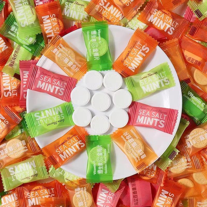 海盐百香果薄荷味糖维c陈皮含片批发散装小零食品糖果清凉清新