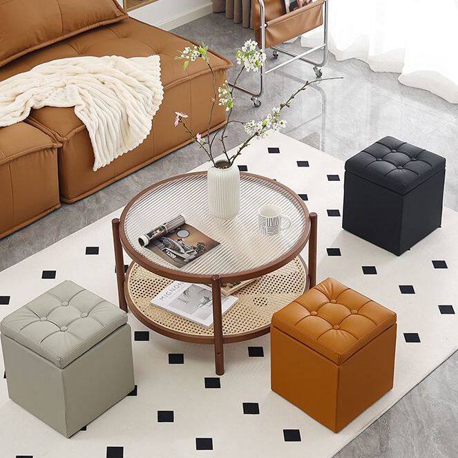 收纳储物凳多功能可坐家用矮凳换鞋搁脚凳方形猫抓皮客厅凳子