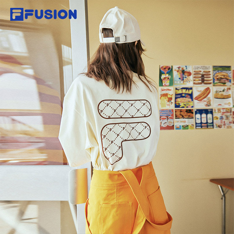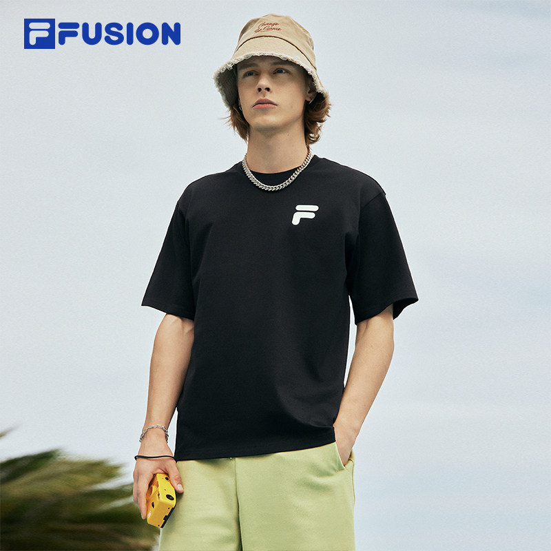 FILA FUSION斐乐潮牌男女同款运动t恤夏季情侣装纯棉透气宽松短t