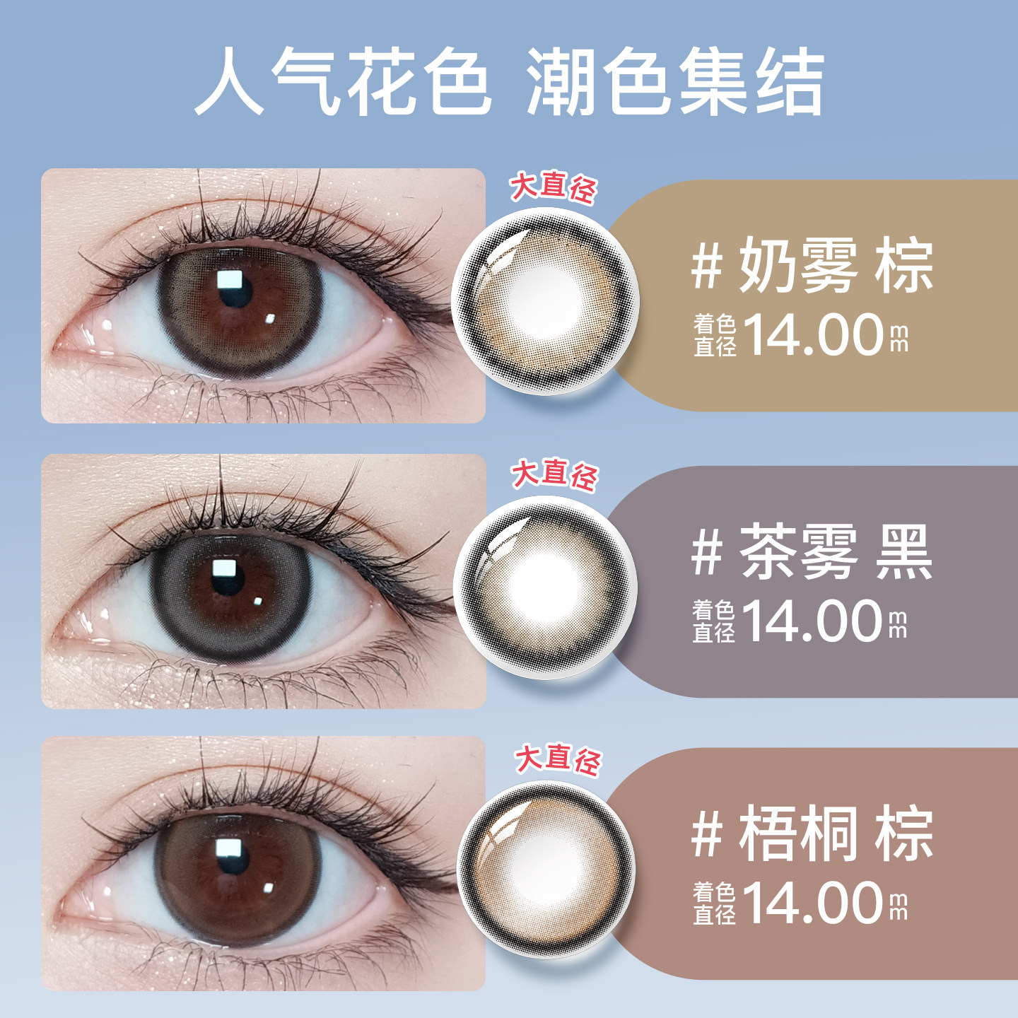 海昌美瞳月抛精选2片小直径近视隐形眼镜镜片棕色官方素颜带度数
