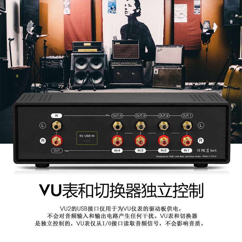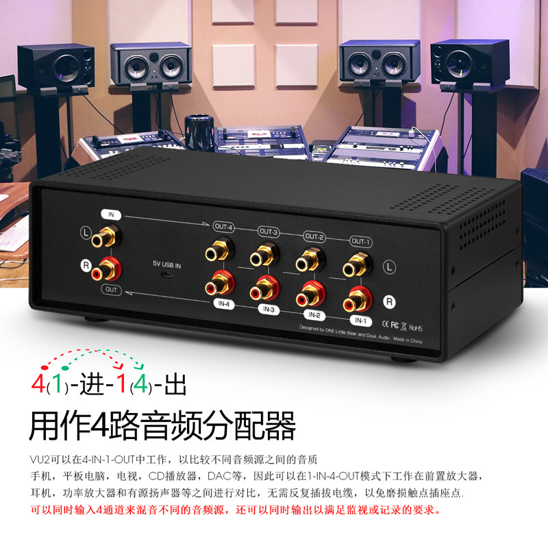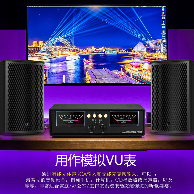 音乐模拟VU电平表动感DB表四路音频切换器分配器麦克风拾音带遥控