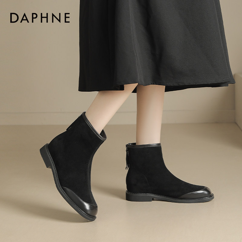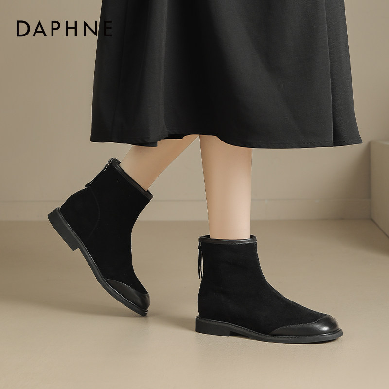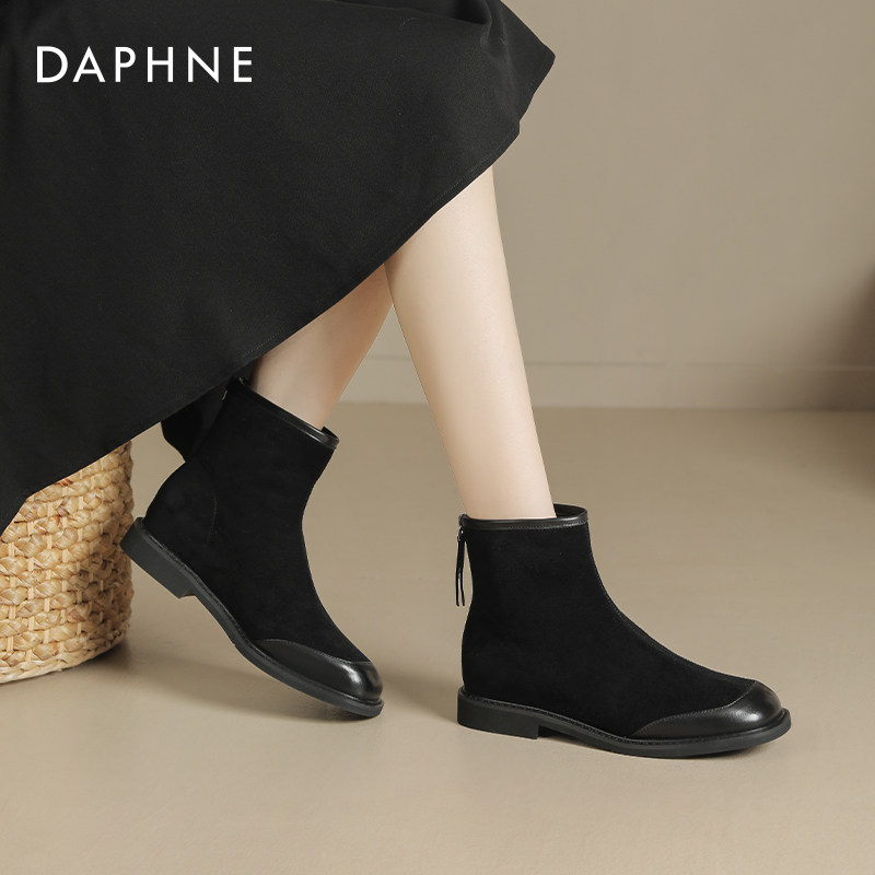 达芙妮短靴女2026新款秋冬平底瘦瘦靴子春季袜靴妈妈鞋春款马丁靴