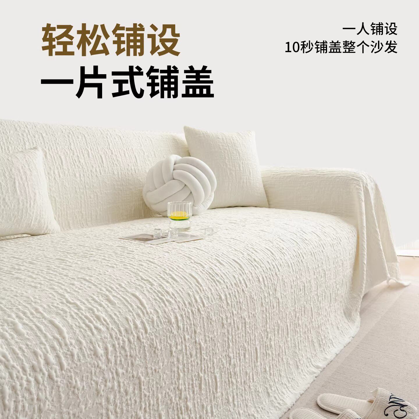 防猫抓奶油风沙发盖布2025新款四季通用太空棉沙发巾全盖套罩防滑