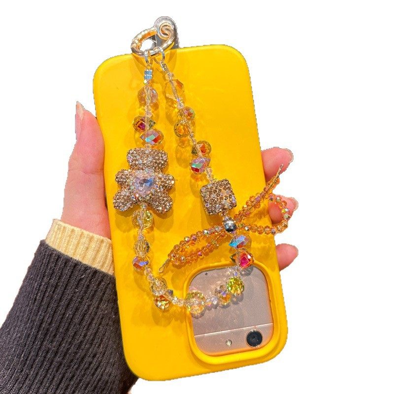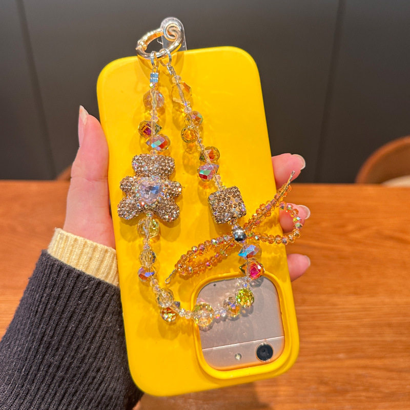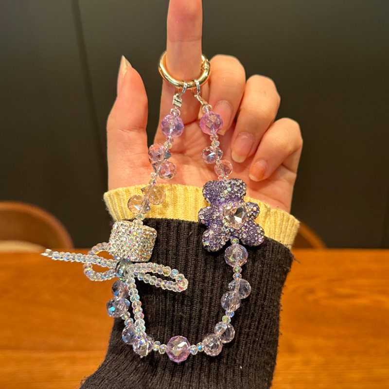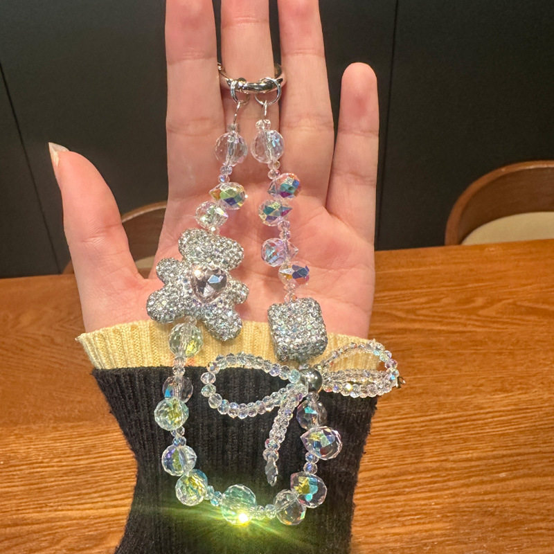 闪钻爱心小熊手机链精珠串挂件高级感饰短款行挂饰链人造水晶