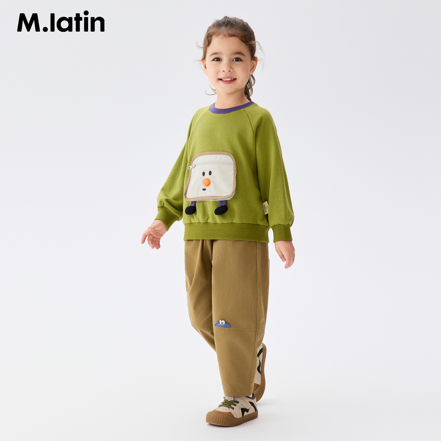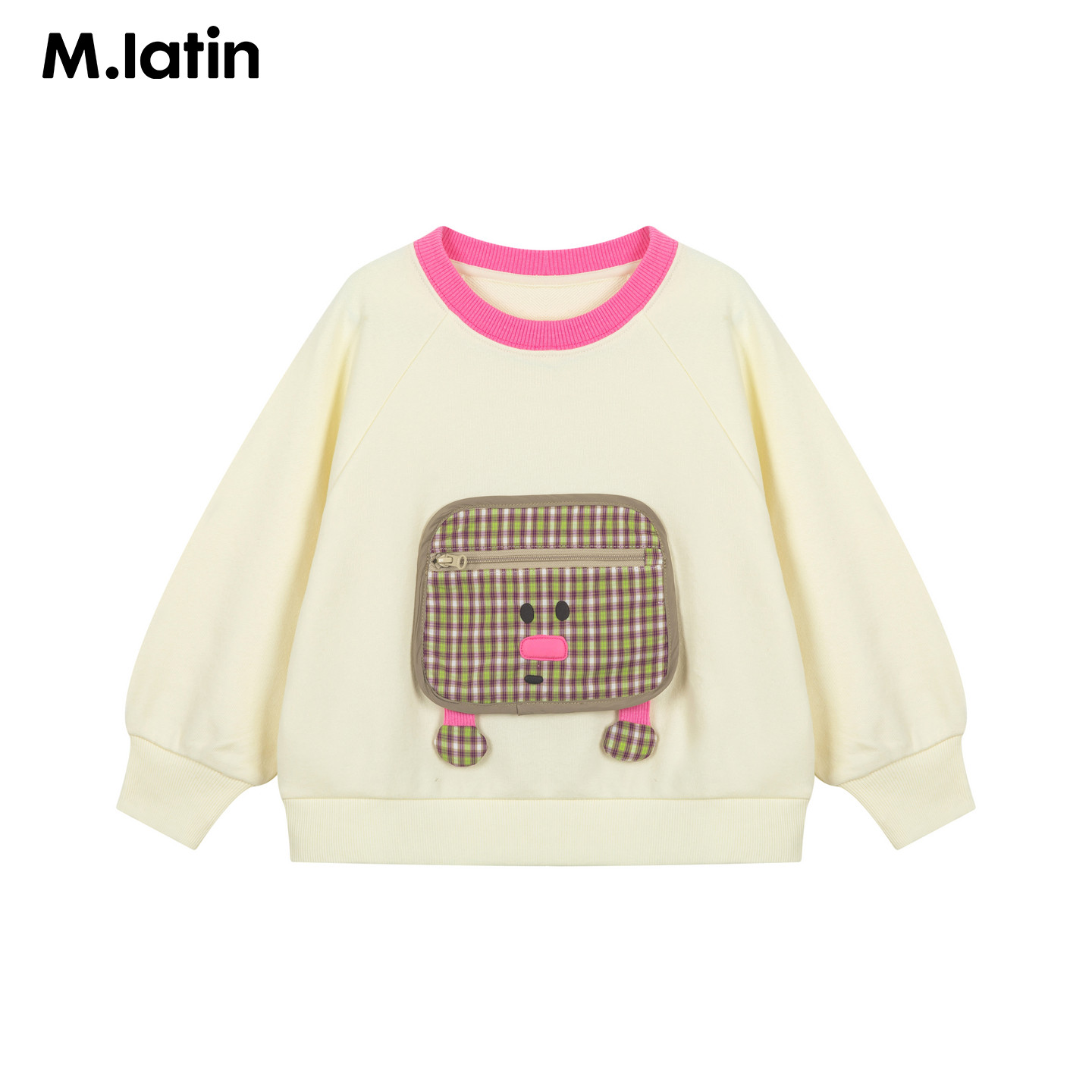 马拉丁儿童卫衣26春装新款女小童小虫撞色口袋软糯亲肤圆领卫衣