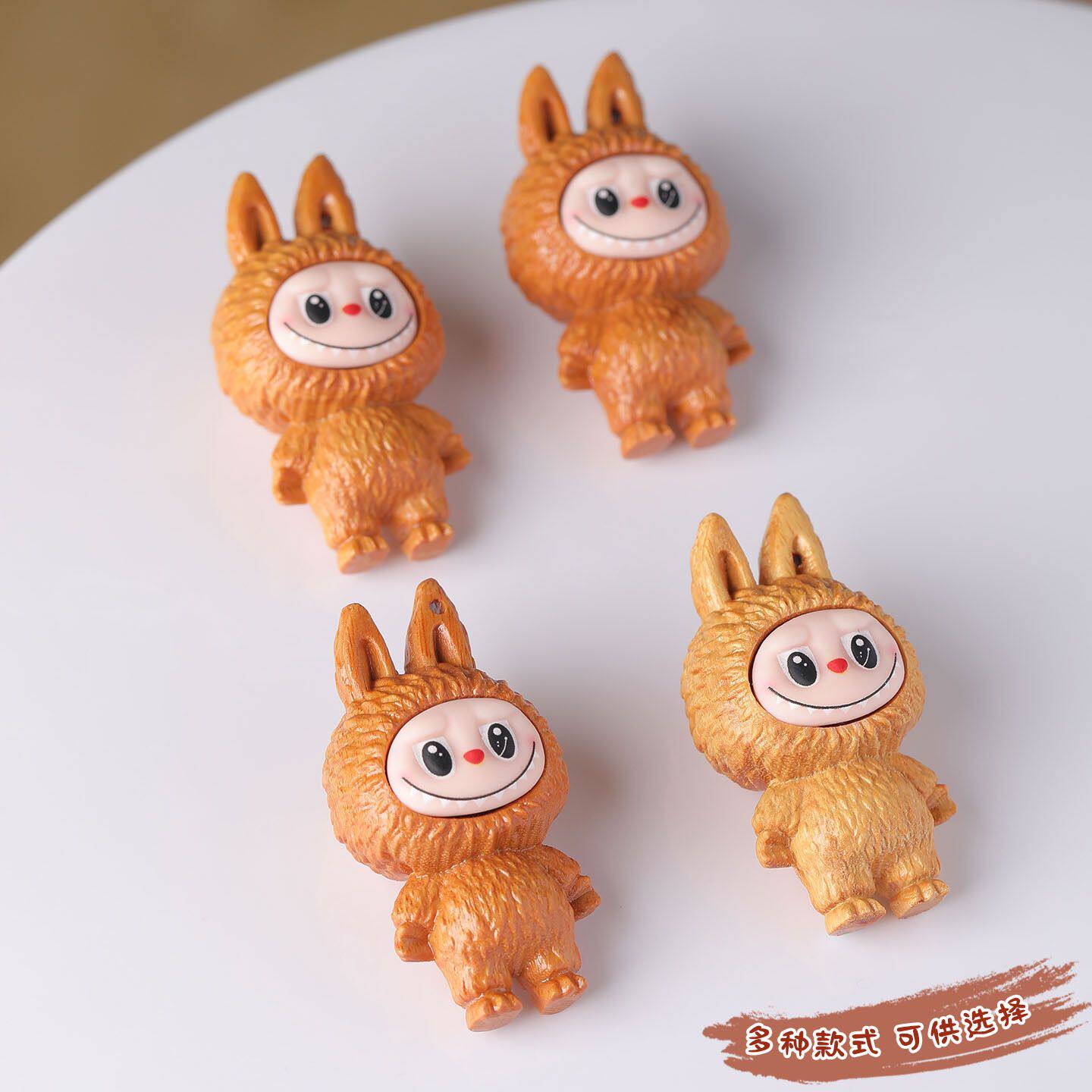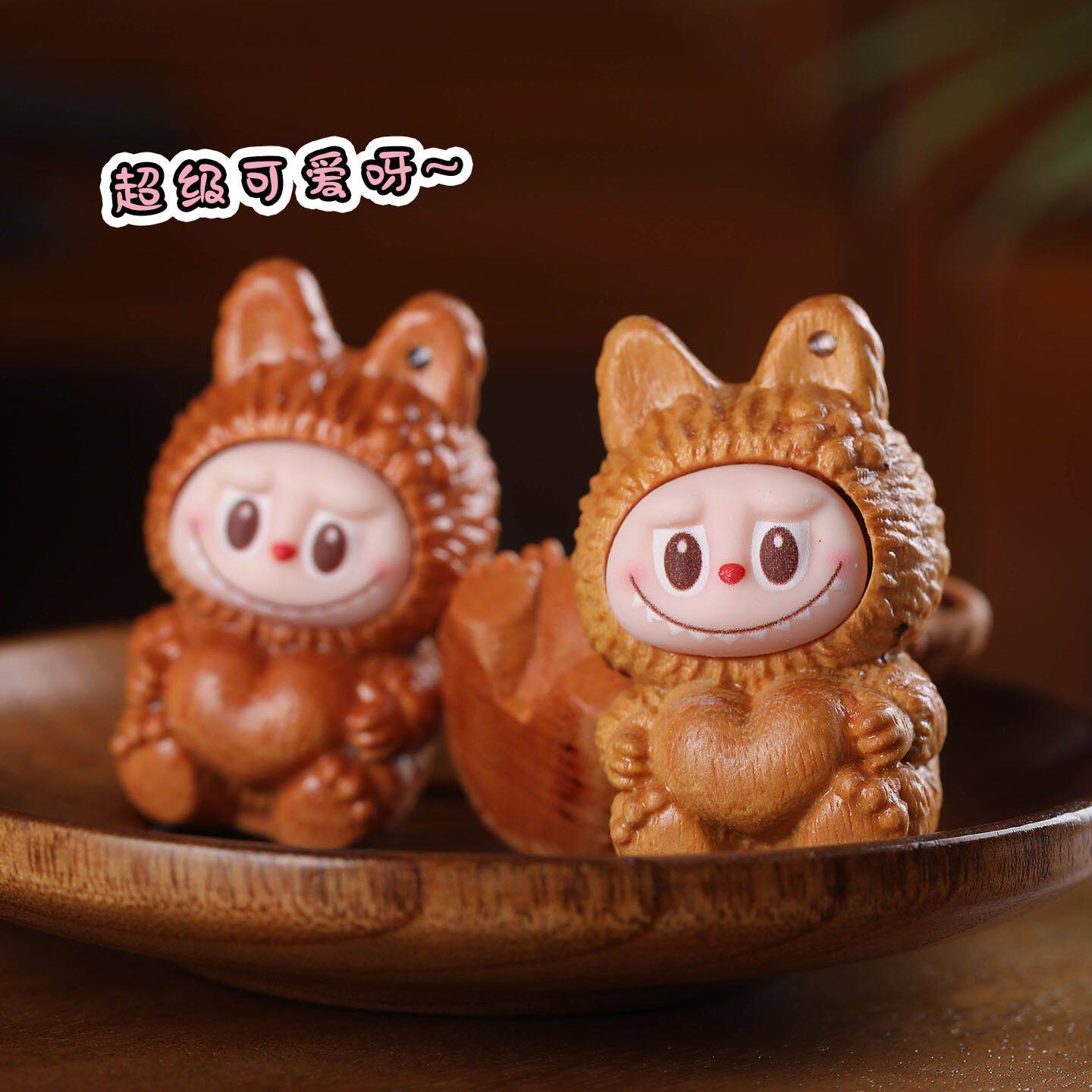 檀木雕刻潮玩拉布布DIY手工卡通公仔摆件手机钥匙挂件饰品配饰