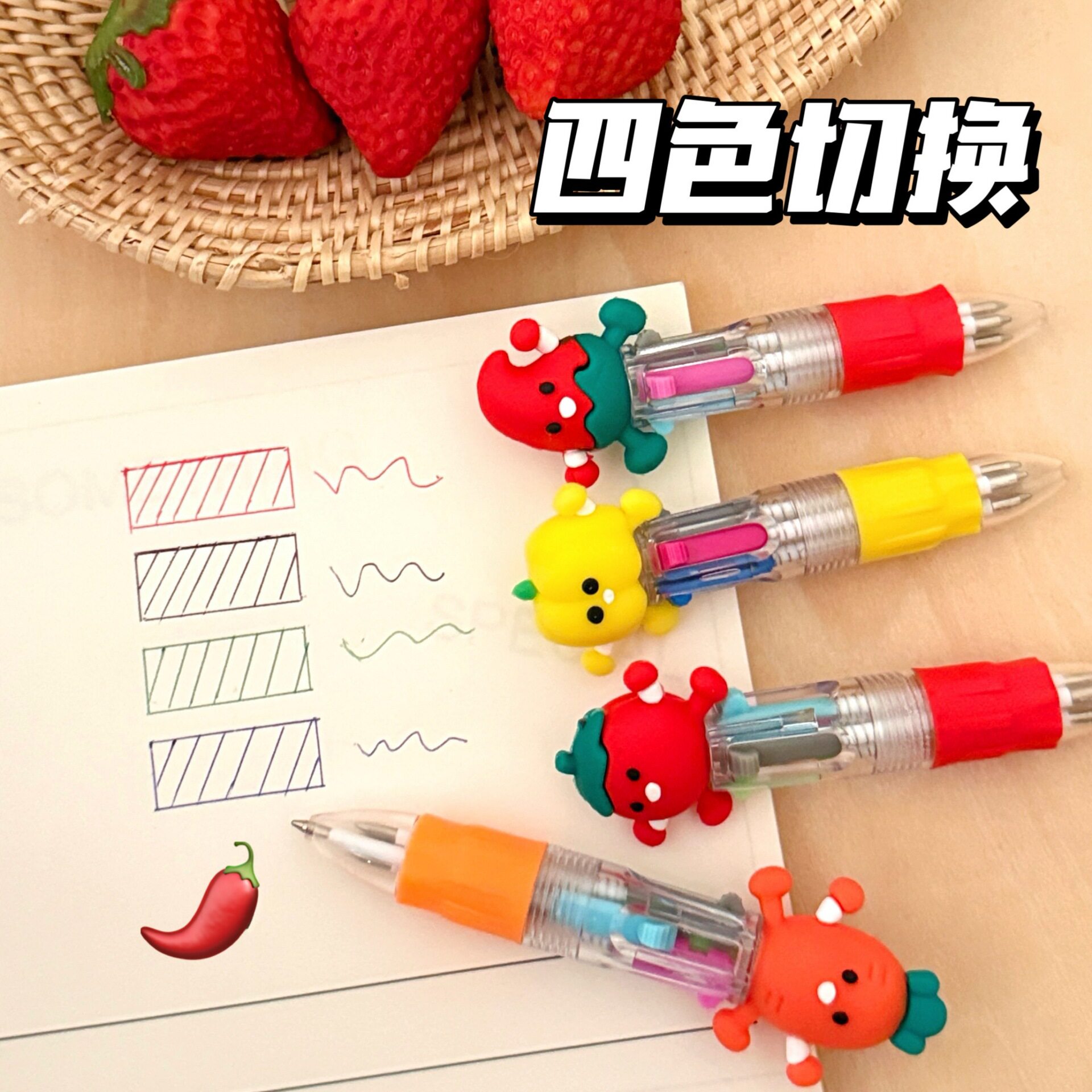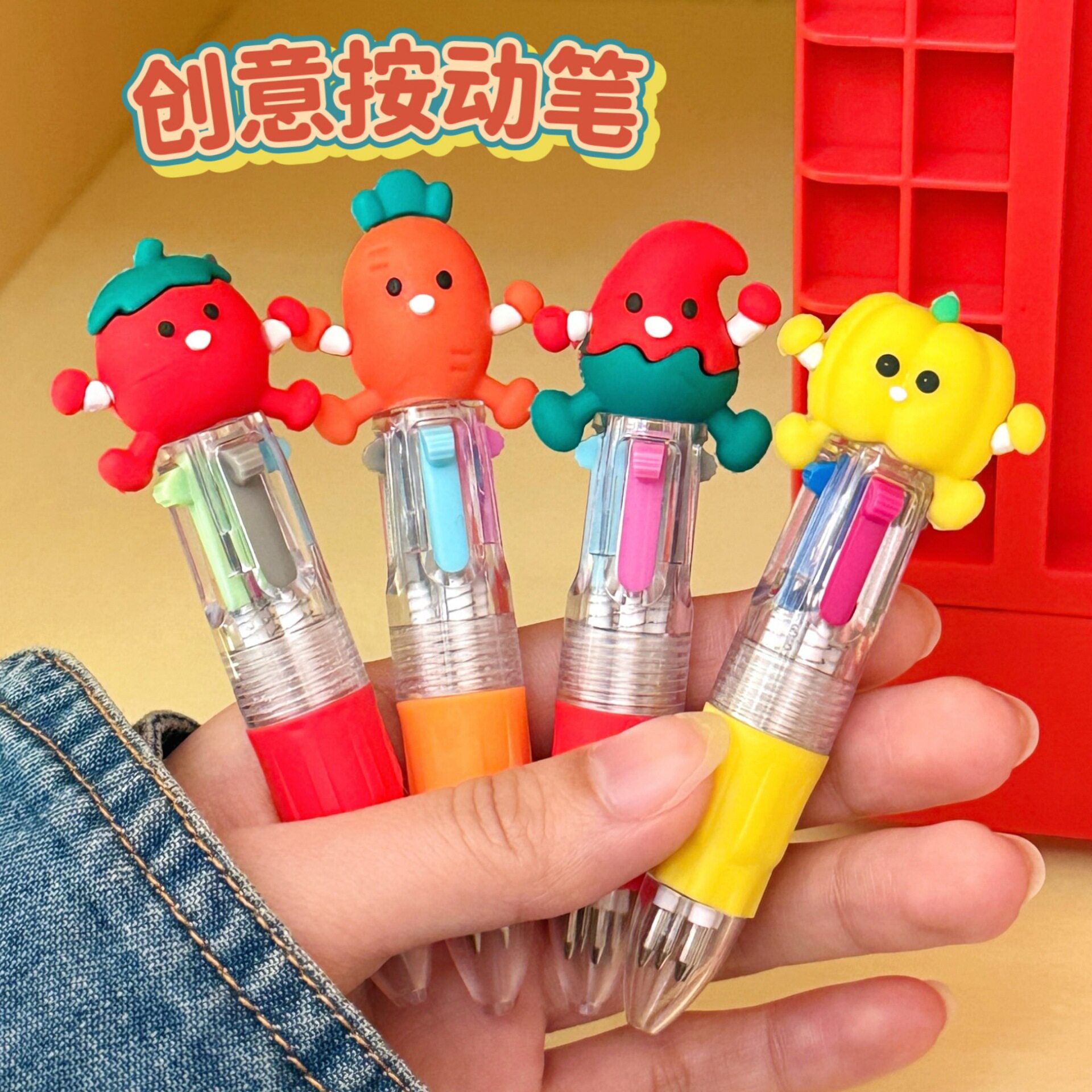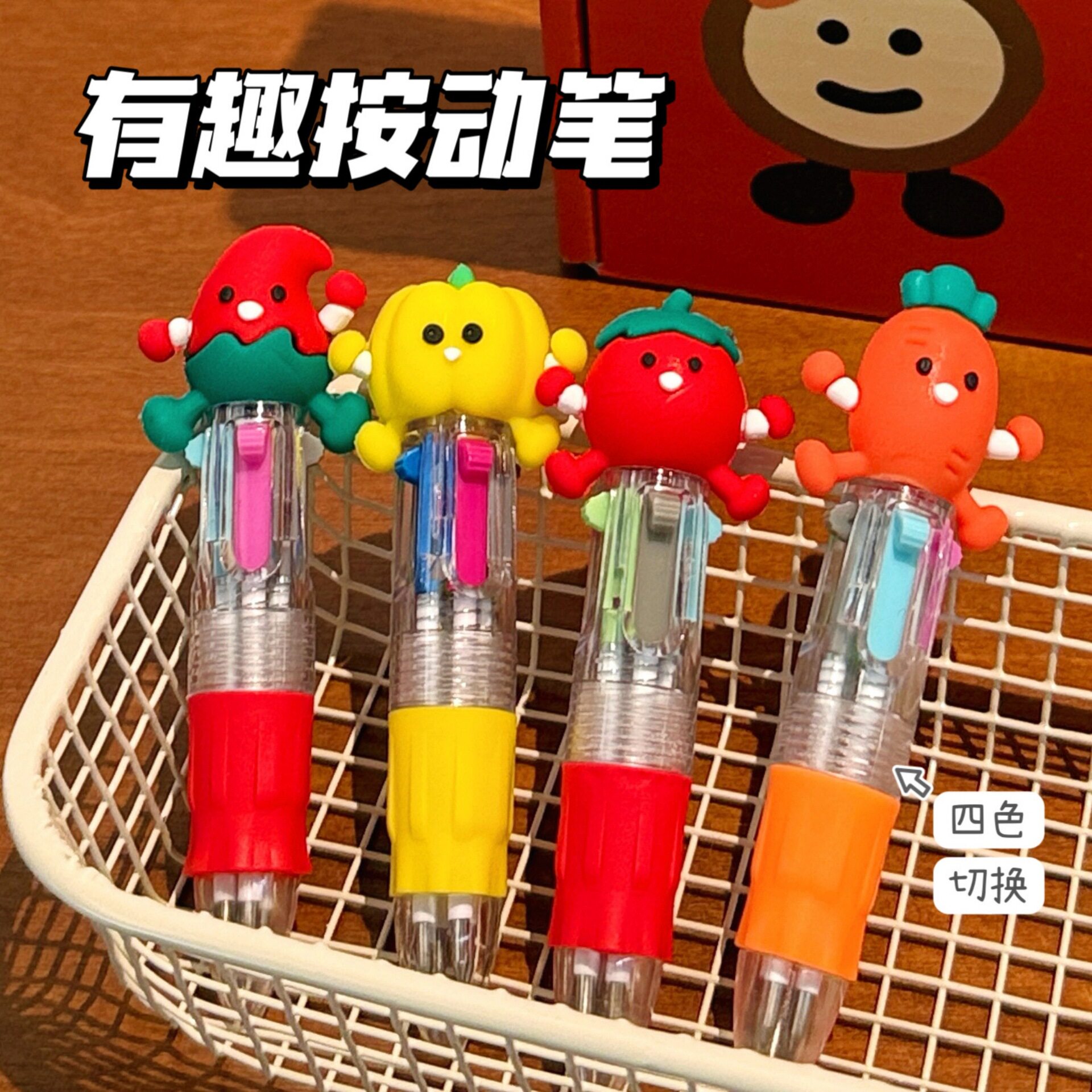 新款卡通蔬菜迷你四色圆珠笔可爱便携学生手账多色笔文具礼品批发