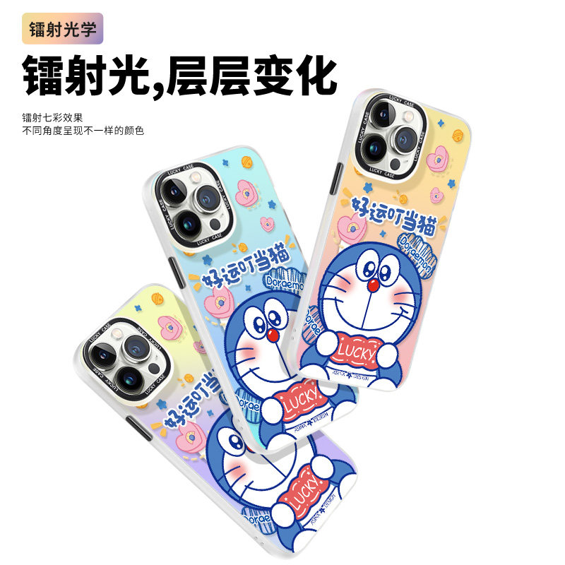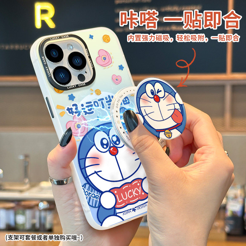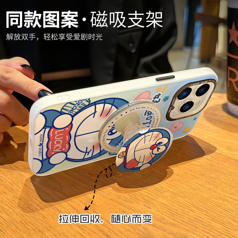MASFEIL × 好运叮当猫适用苹果14Promax手机壳13磁吸支架iPhone14保护套12网红镭射全包11防摔max女款ip13Pr