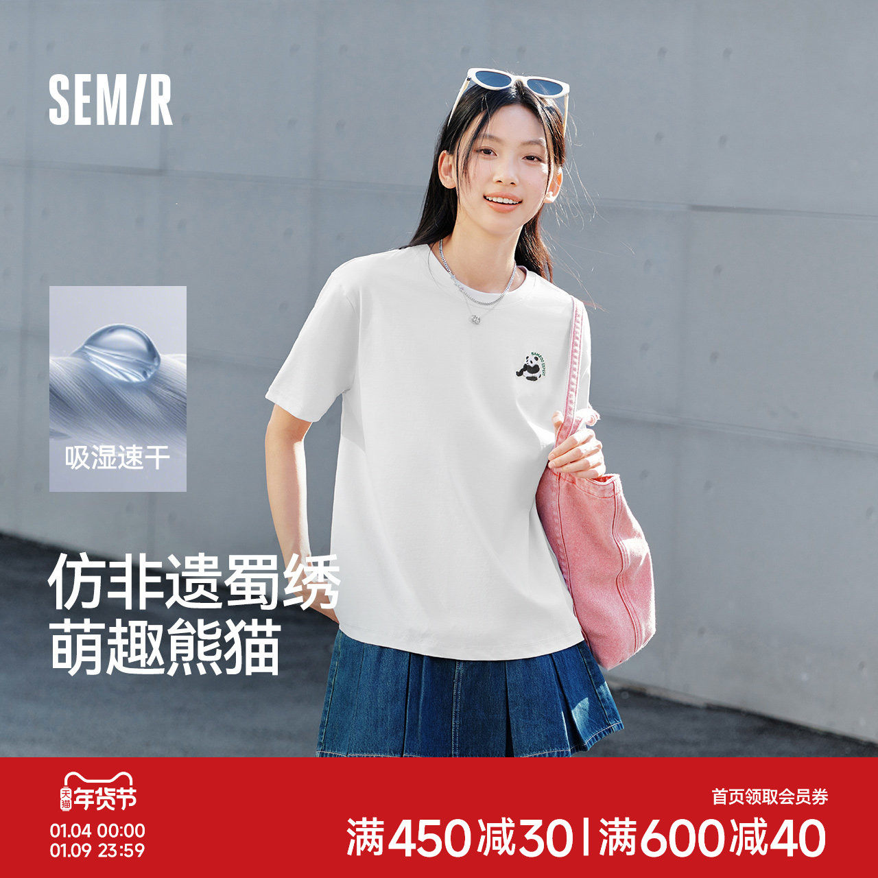 森马短袖T恤男吸湿速干国潮熊猫刺绣2025夏季新款上衣针织休闲装