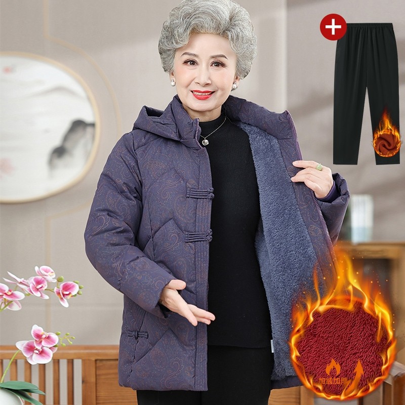 奶奶冬装加绒棉服中老年人加厚保暖外套女妈妈棉衣老太太棉袄实用