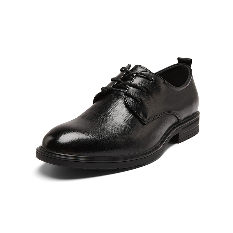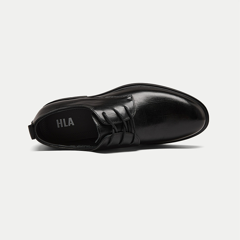 HLA/海澜之家时尚圆头系带正装皮鞋25新商务格纹通勤平跟商务鞋男