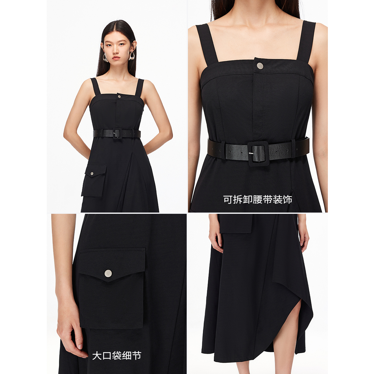 Vero Moda连衣裙2025秋季新款工装风不规则裙摆吊带裙325361013