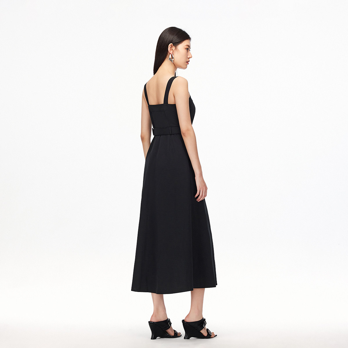COCOBELLA简约气质黑色收腰极简风连衣裙女优雅短袖长裙FR3033-2