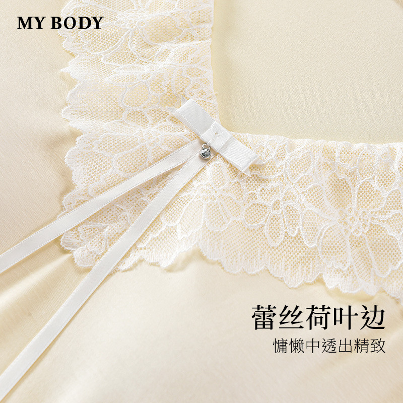商场同款MYBODY2026春季新款睡裙带胸垫软糯蕾丝荷叶边宽松家居服