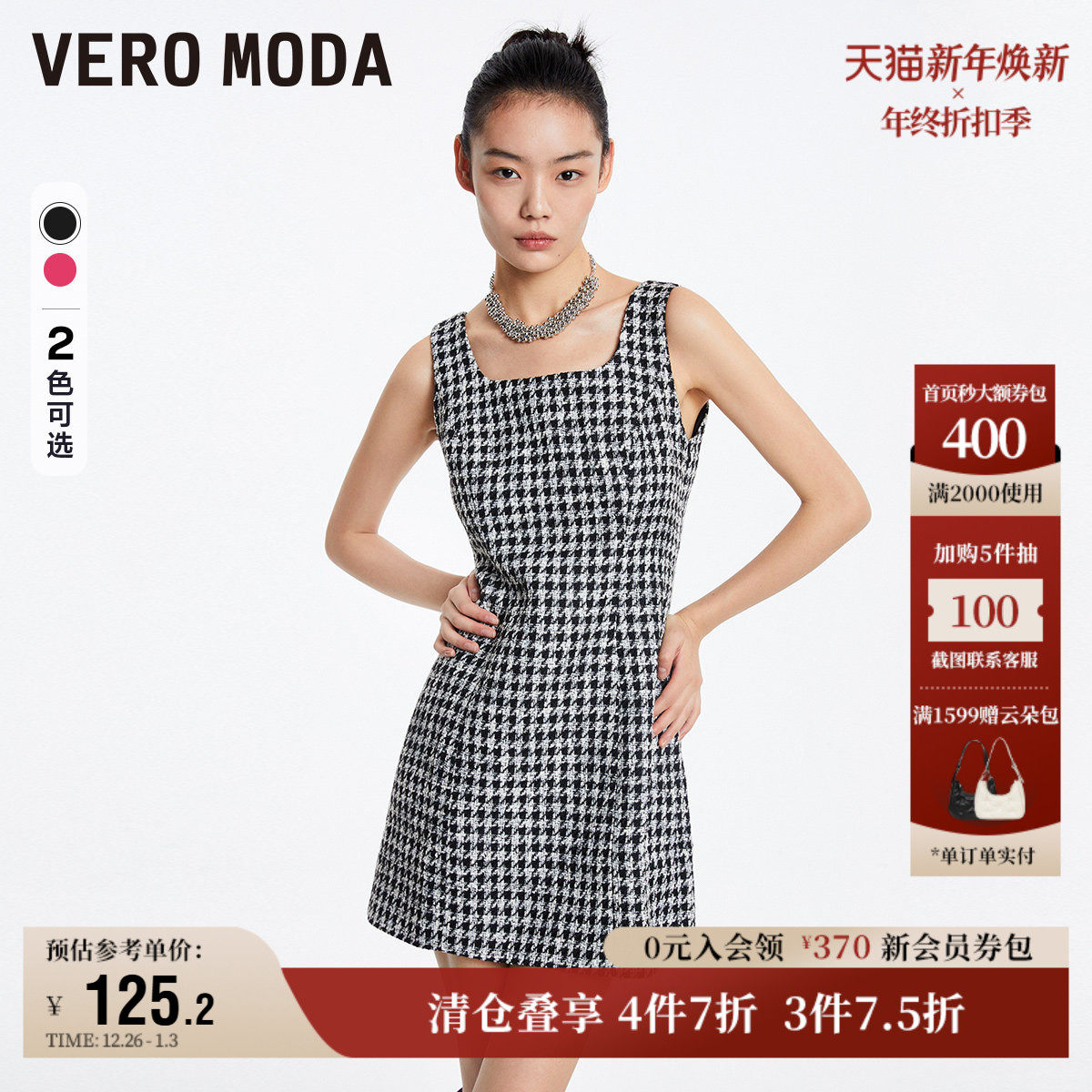 Vero Moda奥莱连衣裙子秋冬清仓小香风千鸟格无袖简约气质优雅女