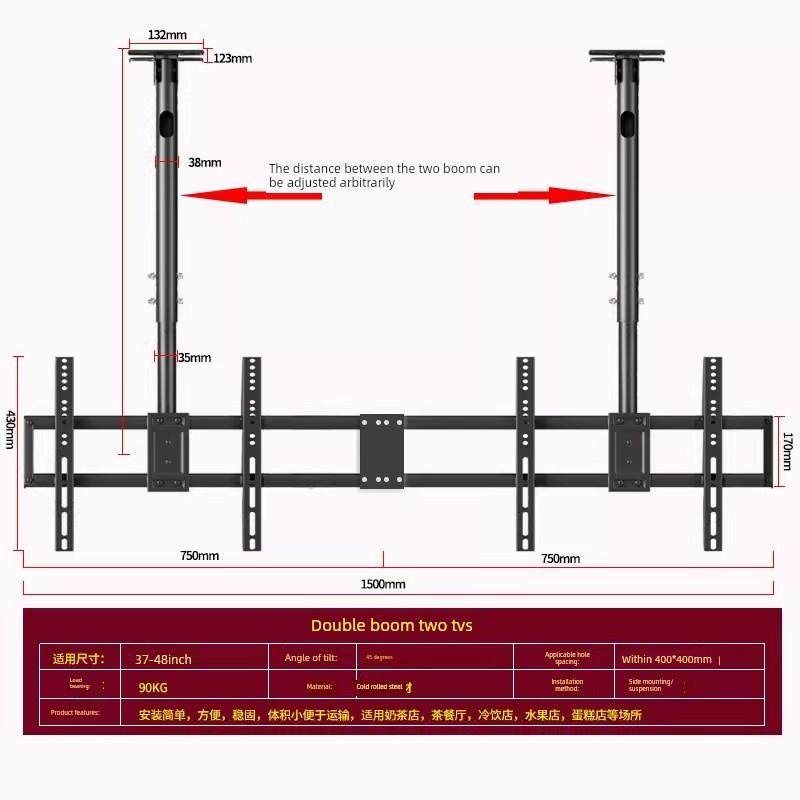 奶茶店铺品牌电视机吊架拼接双屏三屏悬挂架液晶灯箱吊顶挂架定制