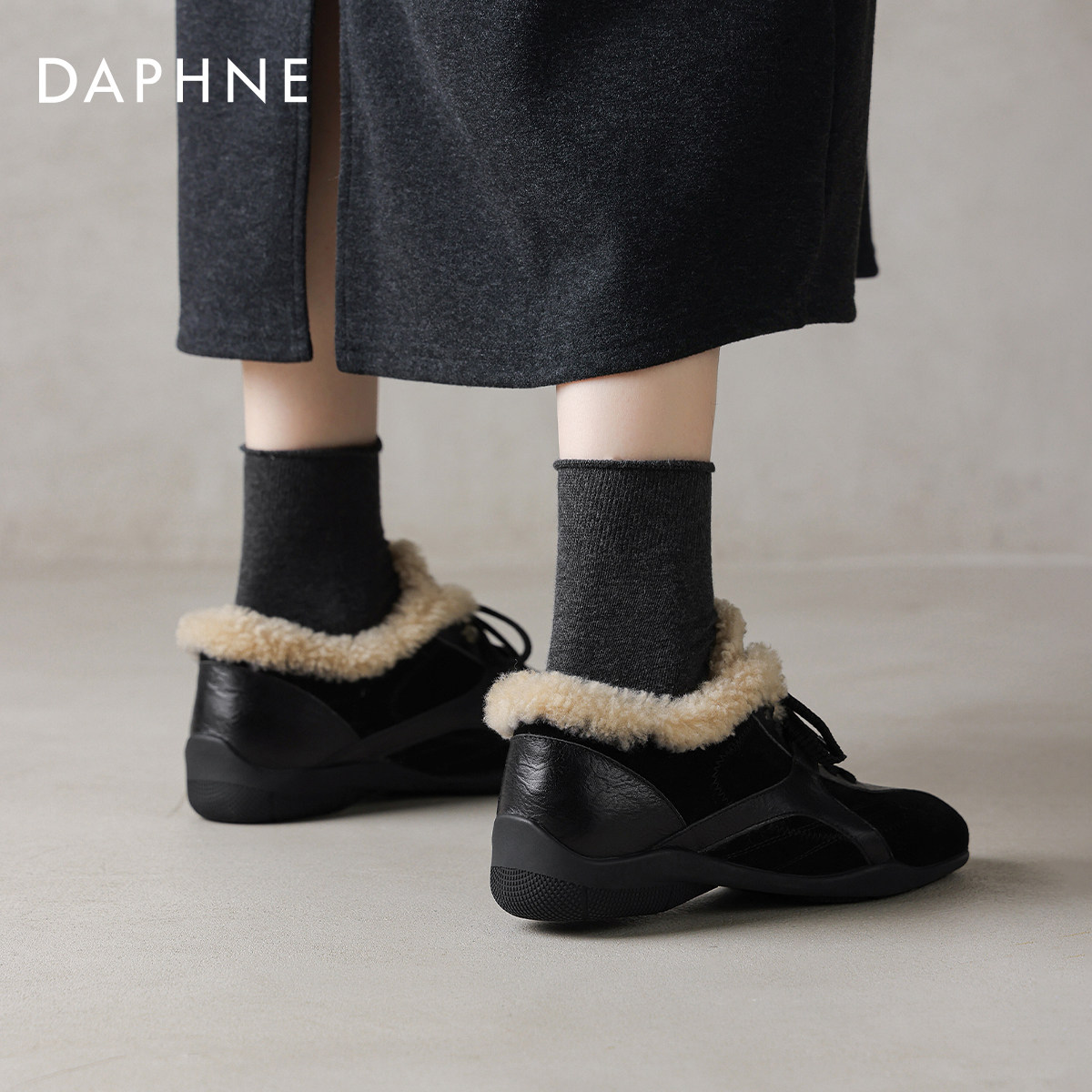 达芙妮加绒德训鞋女2026新款冬季羊羔毛保暖棉鞋厚底运动风雪地靴