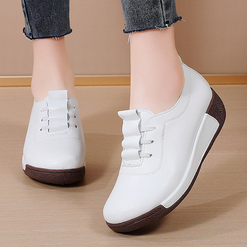欧伦啄木鸟真皮厚底松糕鞋女士牛筋软底中老年单鞋休闲平底防滑妈