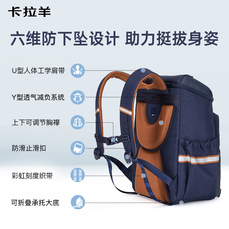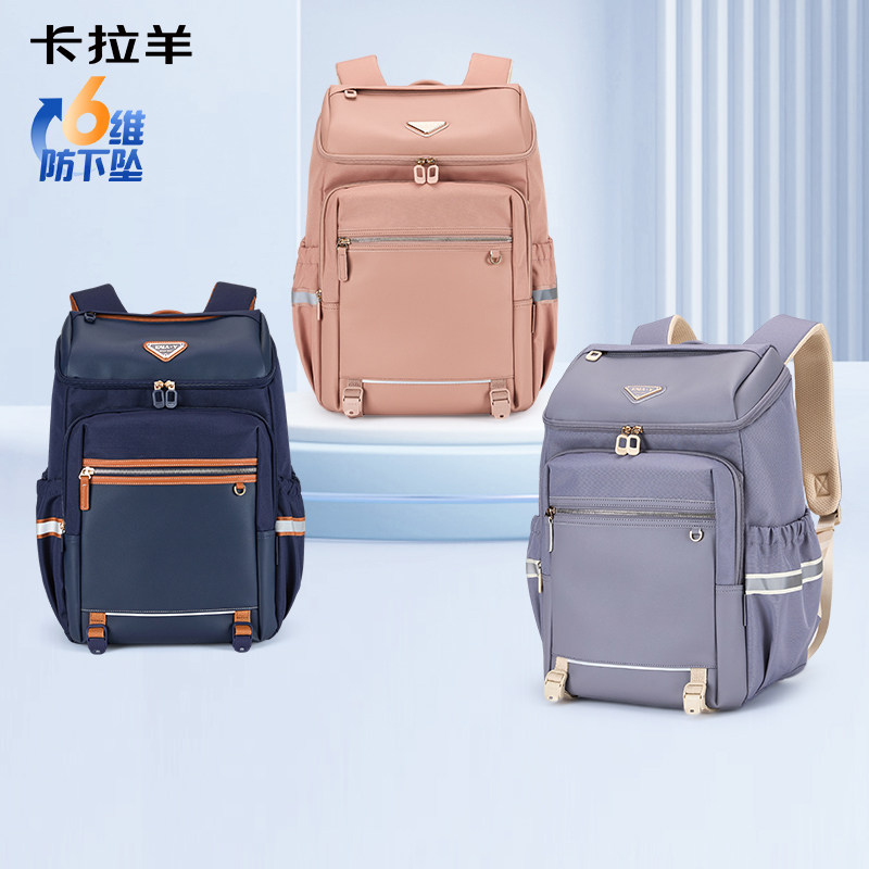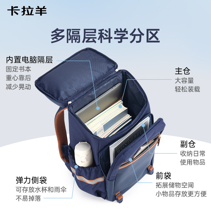 卡拉羊中学生升级款减负大嘴书包女轻便防下坠大容量双肩背包男