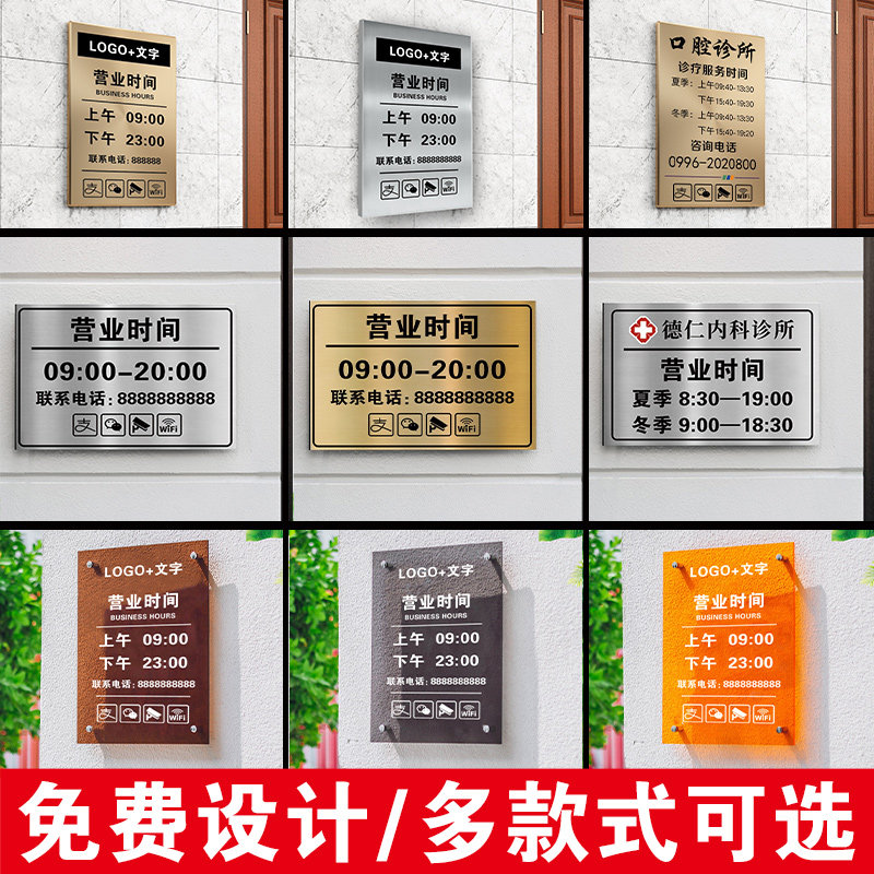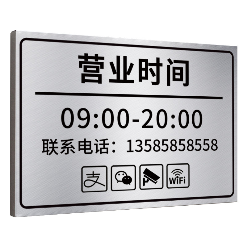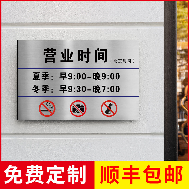 不锈钢店铺营业时间告示牌定制美容院餐饮店商铺上下班工作时间店作息挂牌电话号码牌工作室门牌创意展示牌