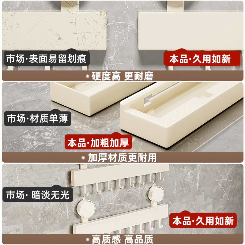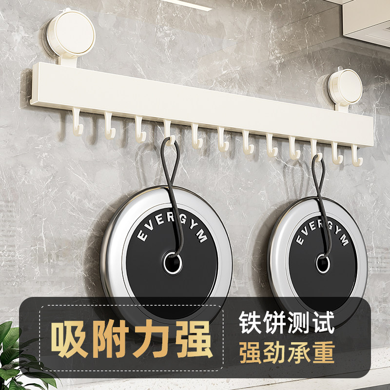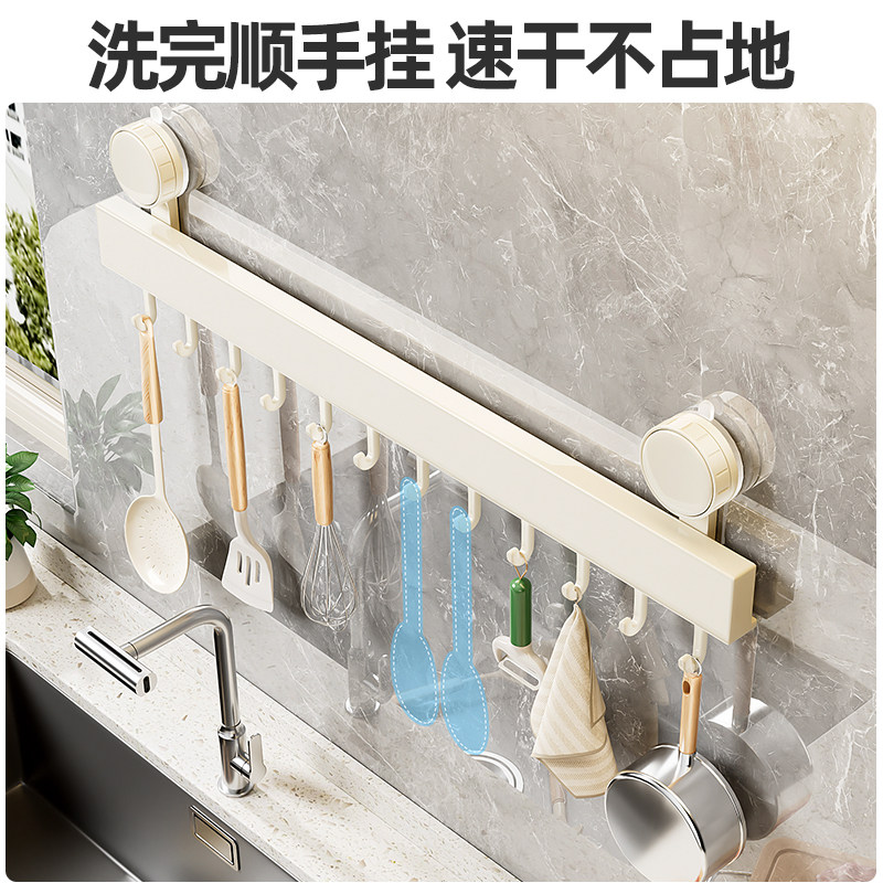 吸盘厨房挂钩置物架免打孔挂杆锅铲勺子一排挂架壁挂式收纳架墙面