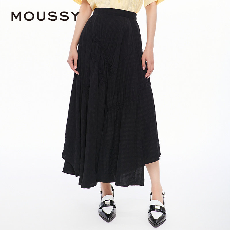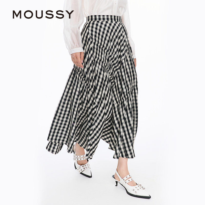 MOUSSY 夏季文艺感不规则格纹半身裙女028ISA30-3021