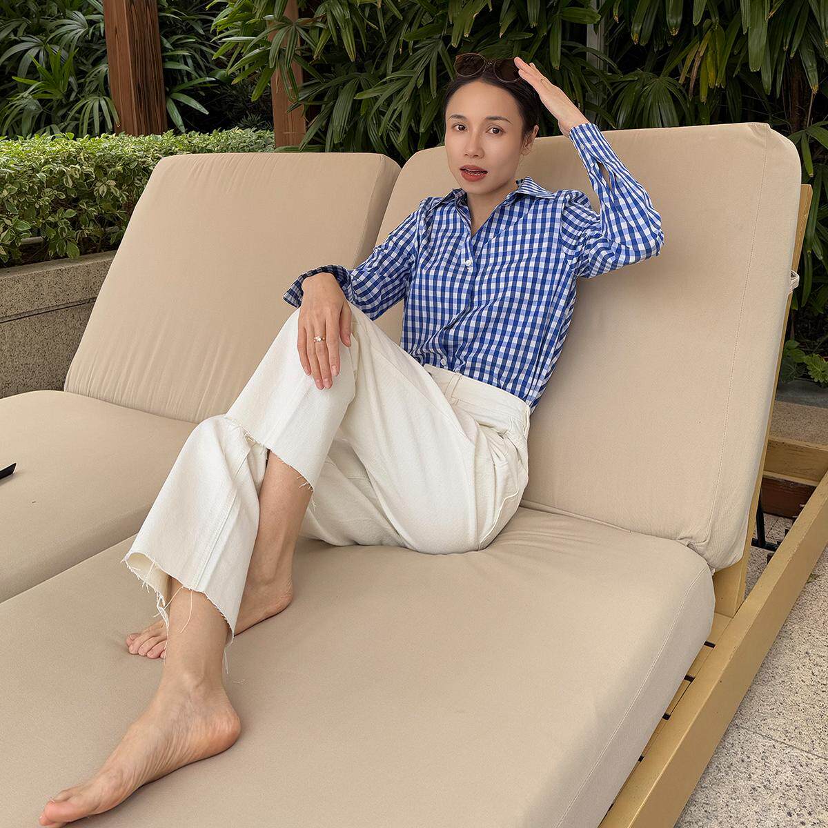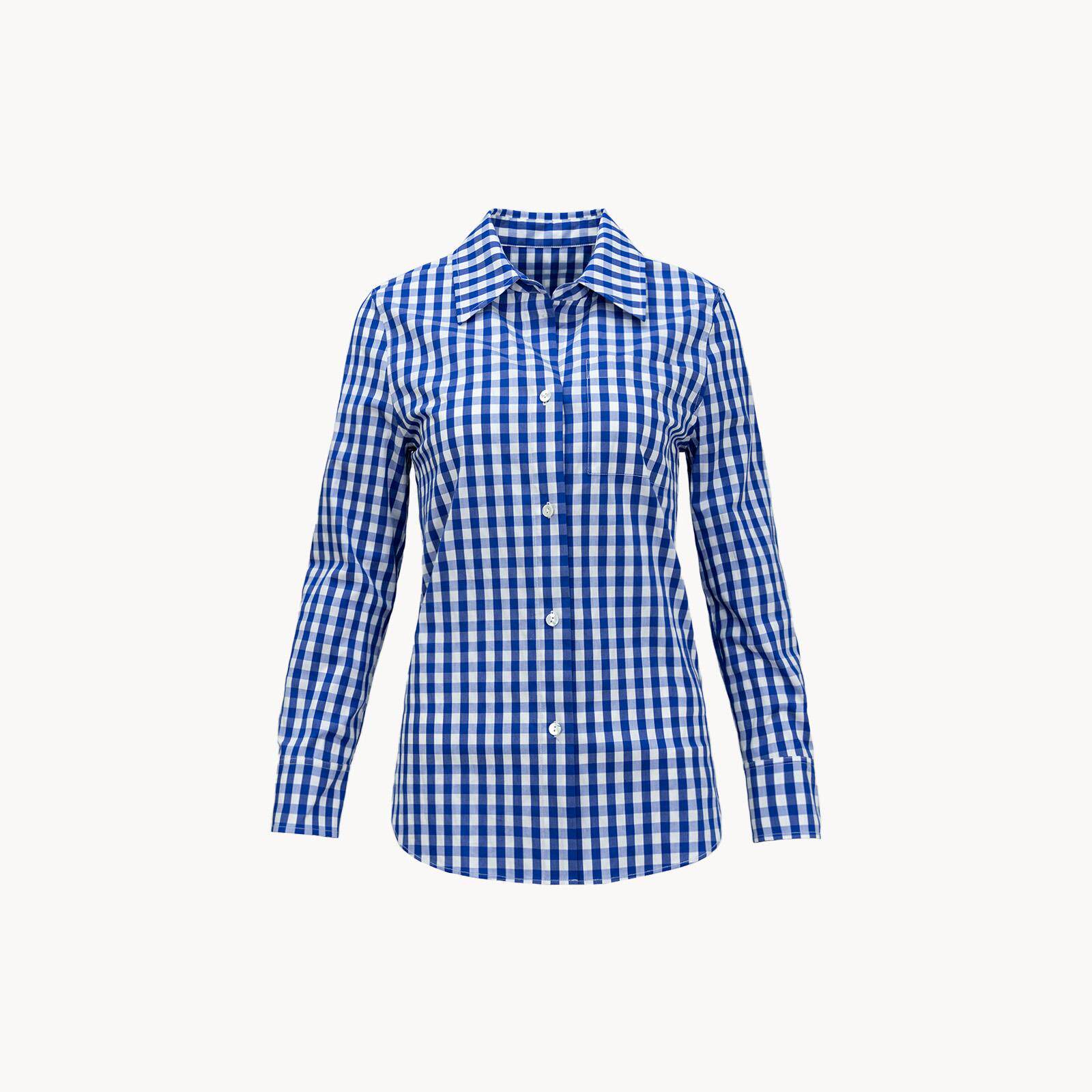 THEEASE舒适派【海盐格调】蓝白格休闲衬衫免烫色织工艺长袖上衣