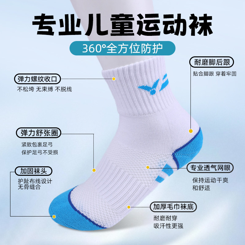 VICTOR威克多胜利儿童羽毛球袜毛巾底加厚棉男童女童袜SK0017
