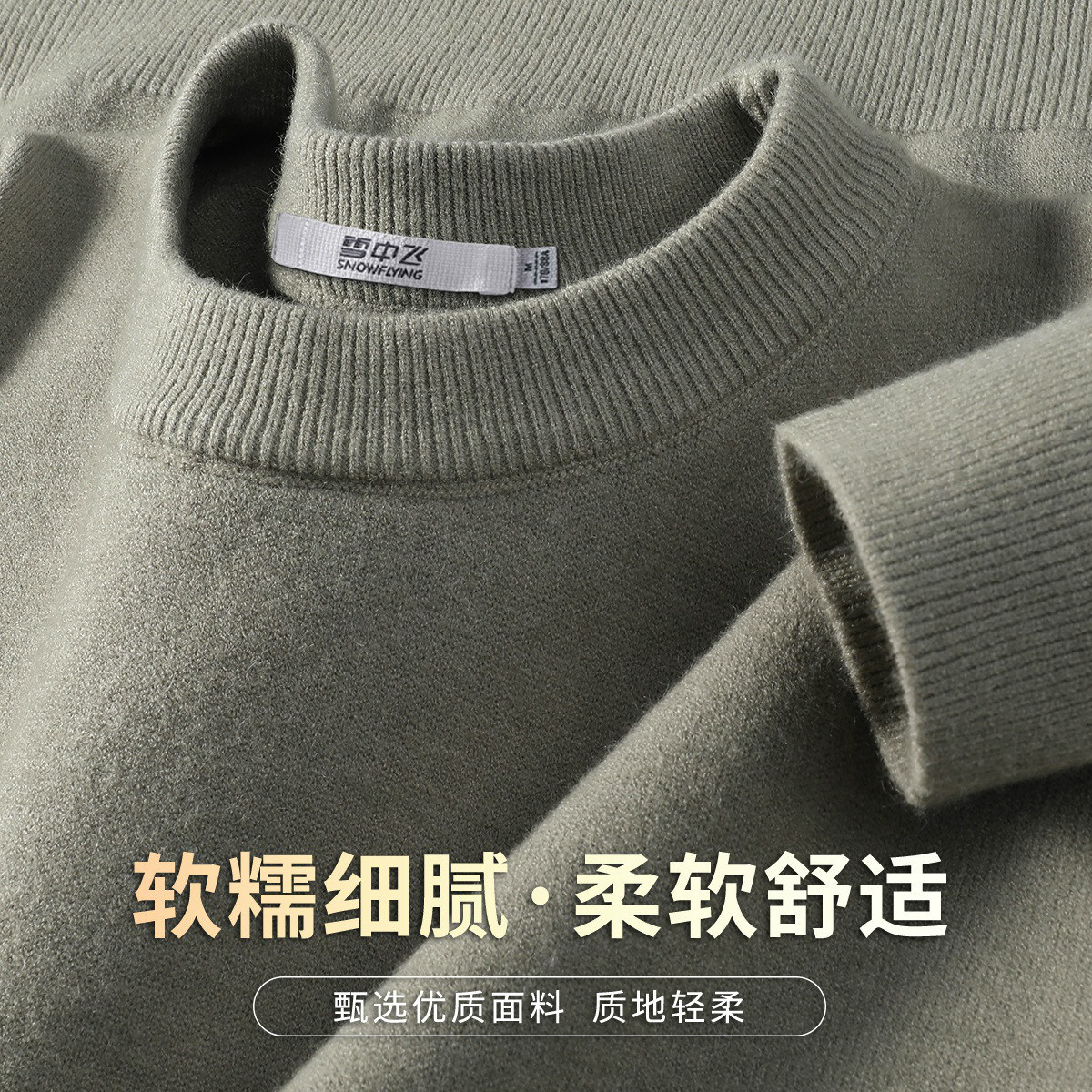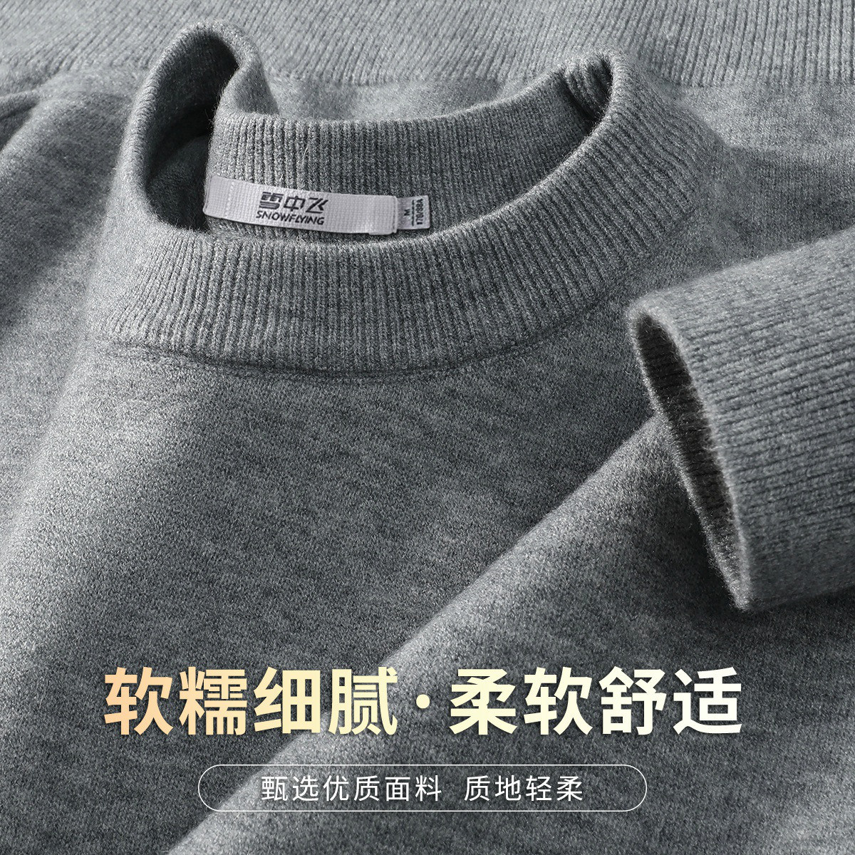 雪中飞圆领套头毛衣男25年秋冬单品纯色简约内搭休闲打底衫男装W