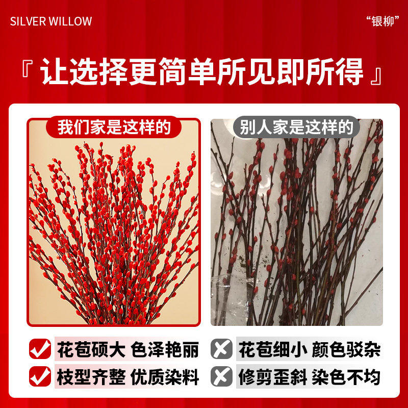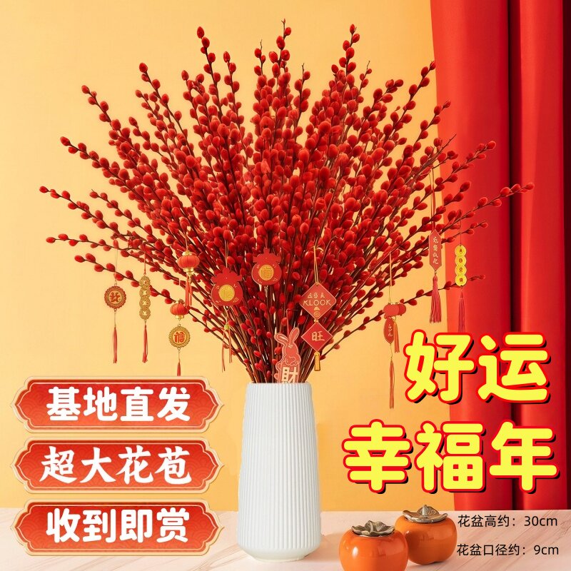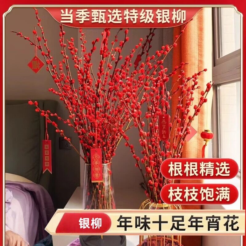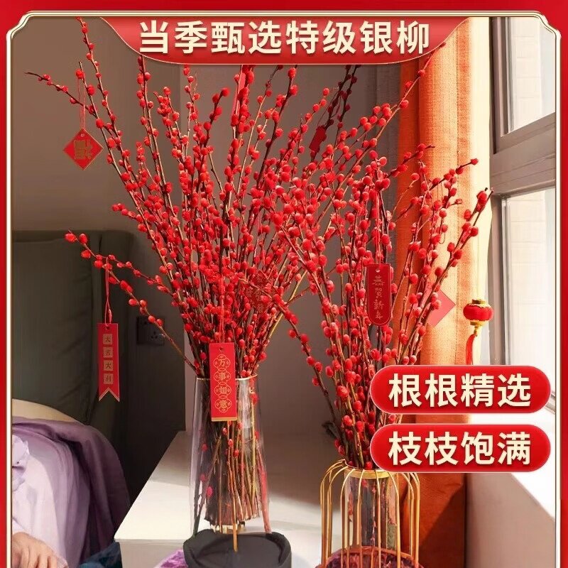 银柳真花鲜枝年宵花客厅摆件干花盆栽抱抱桶红色花卉干枝水培植物