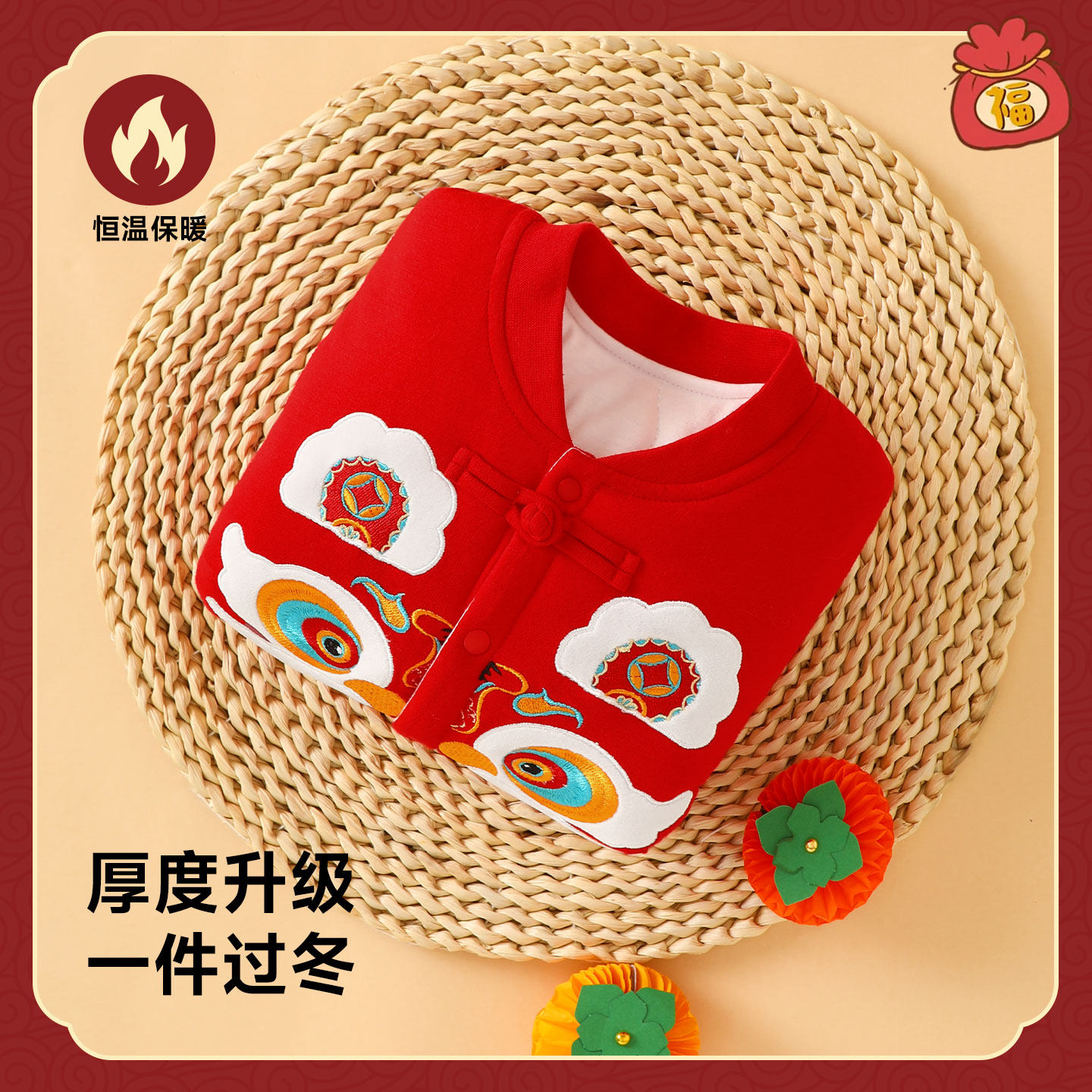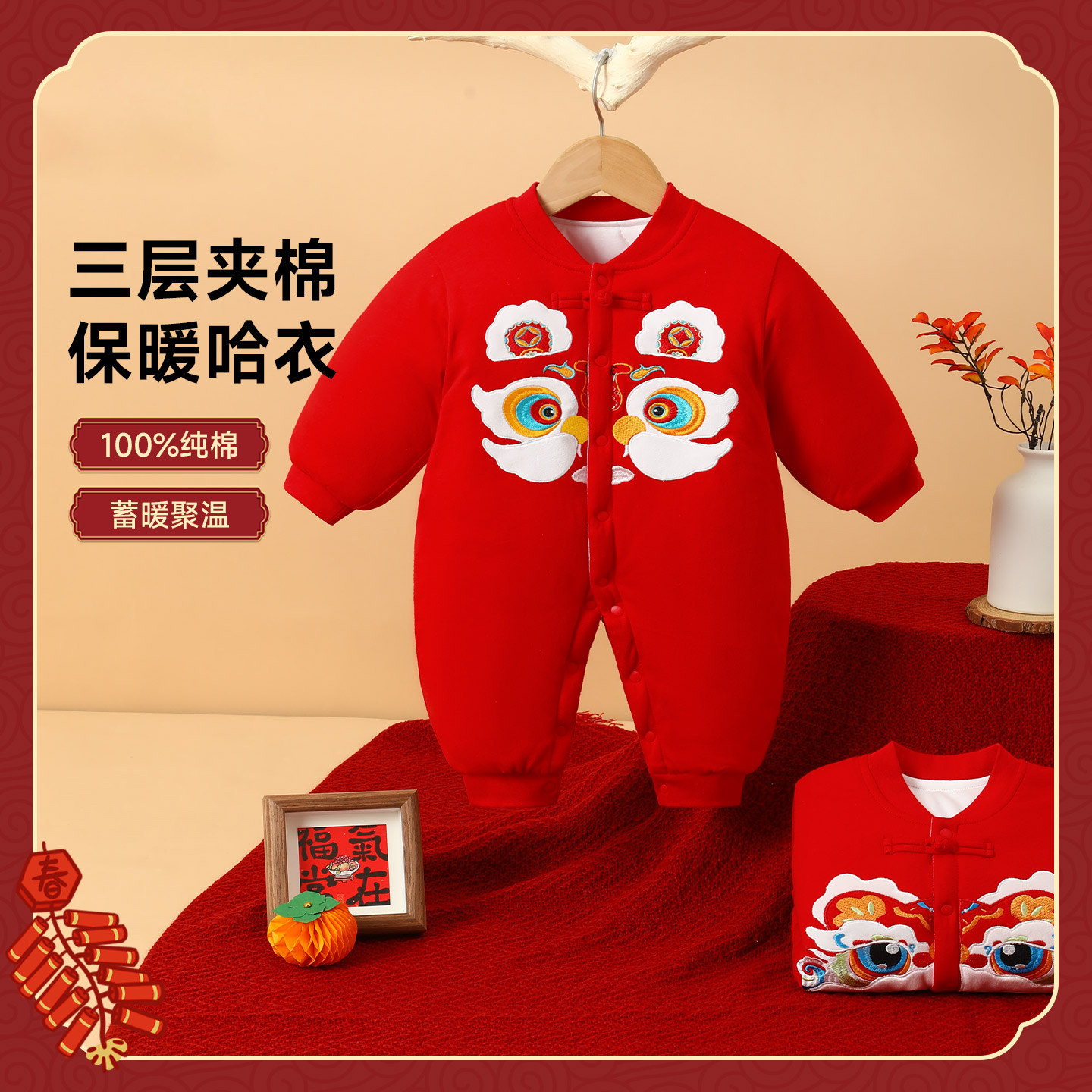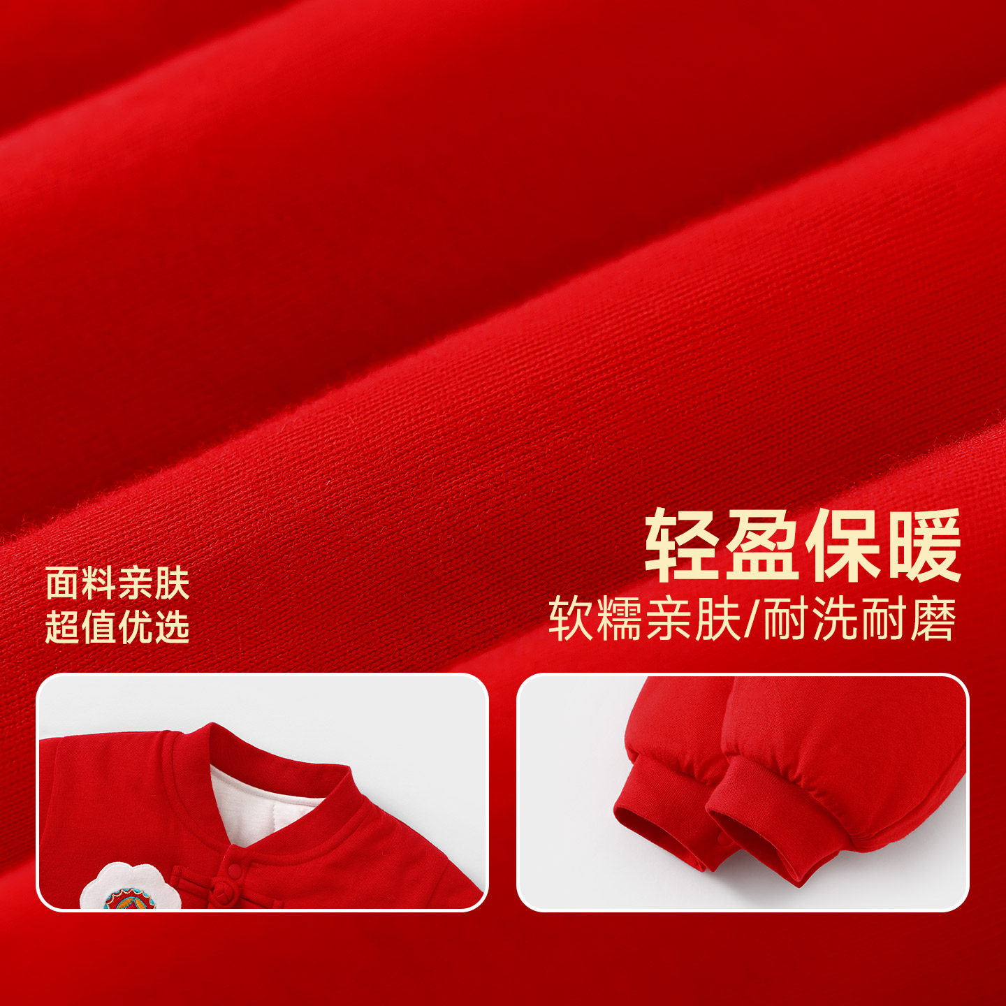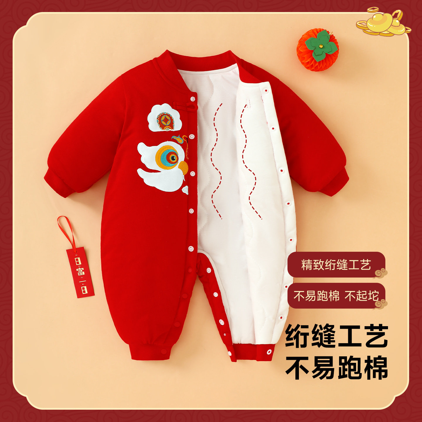 婧麒婴儿连体衣宝宝冬季新年服满月百天周岁礼服哈衣婴幼儿爬爬服