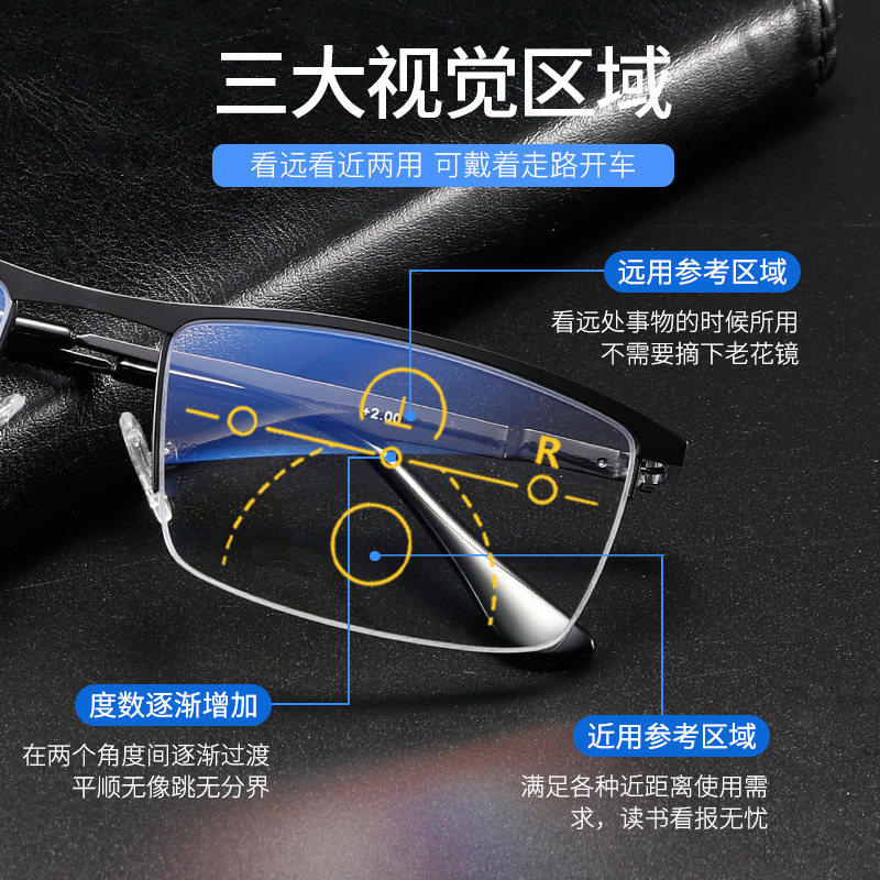 高档老花眼镜中老年高清老花镜男防蓝光老年人女多功能自动变焦镜