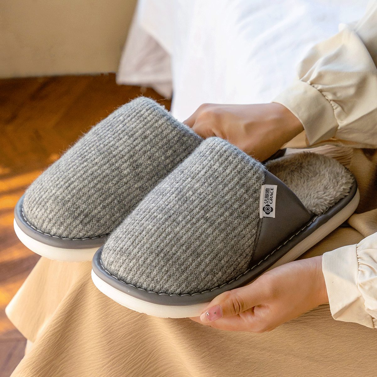 朴西棉拖鞋女士秋冬季厚底简约保暖室内居家用软底防滑情侣棉拖男