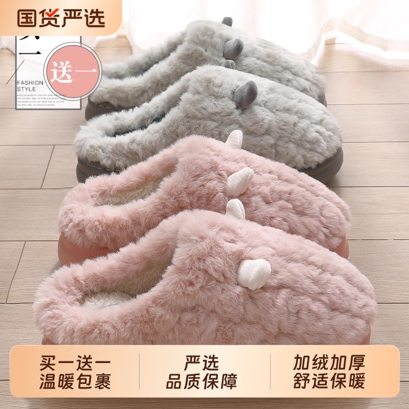 买一送一棉拖鞋女士秋冬季2025新款室内家居情侣一对保暖棉拖男款