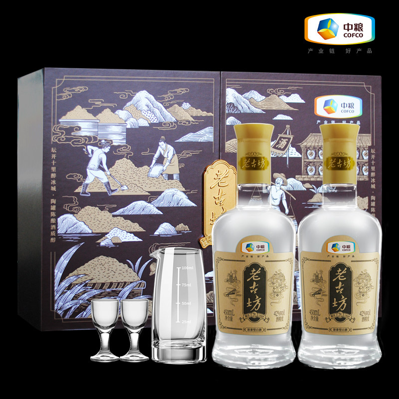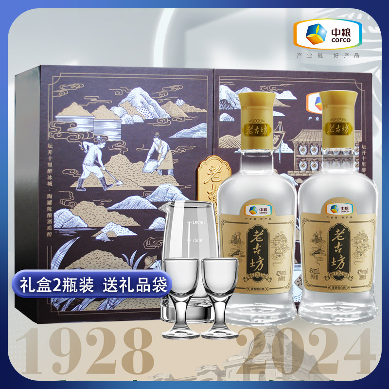 中粮老古坊浓香型送礼盒纯粮优级白酒2瓶装陈酿酿酒消费券