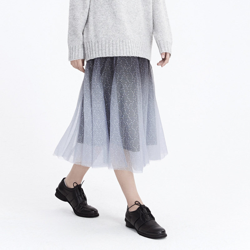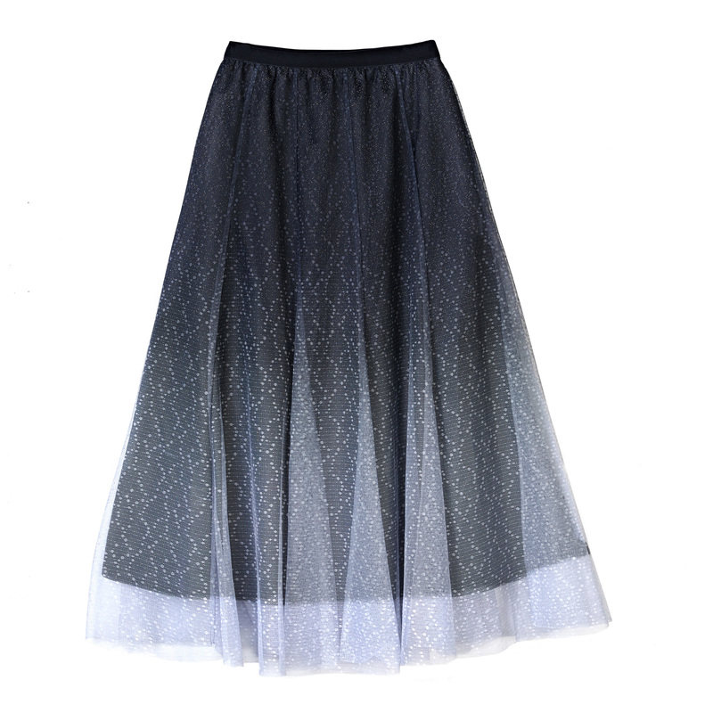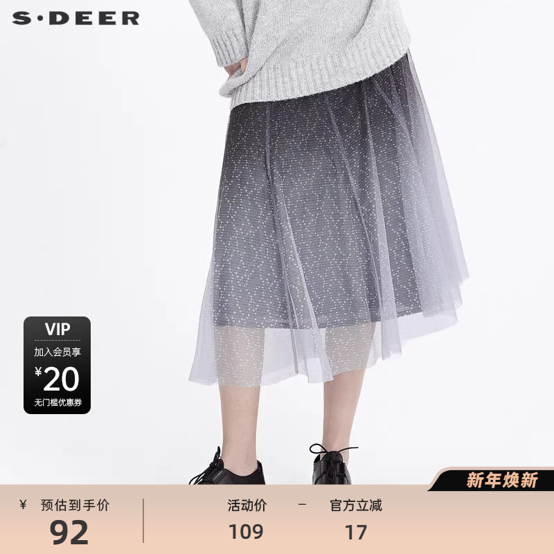 sdeer圣迪奥女装优雅文艺松紧网纱拼接不规则长裙S20461105