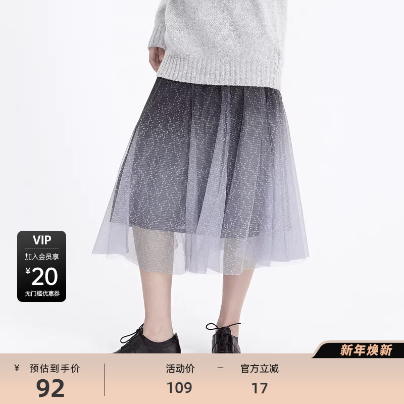BANANA BABY2025年秋冬新款提花针织女日系碎花雪纺长款半身裙