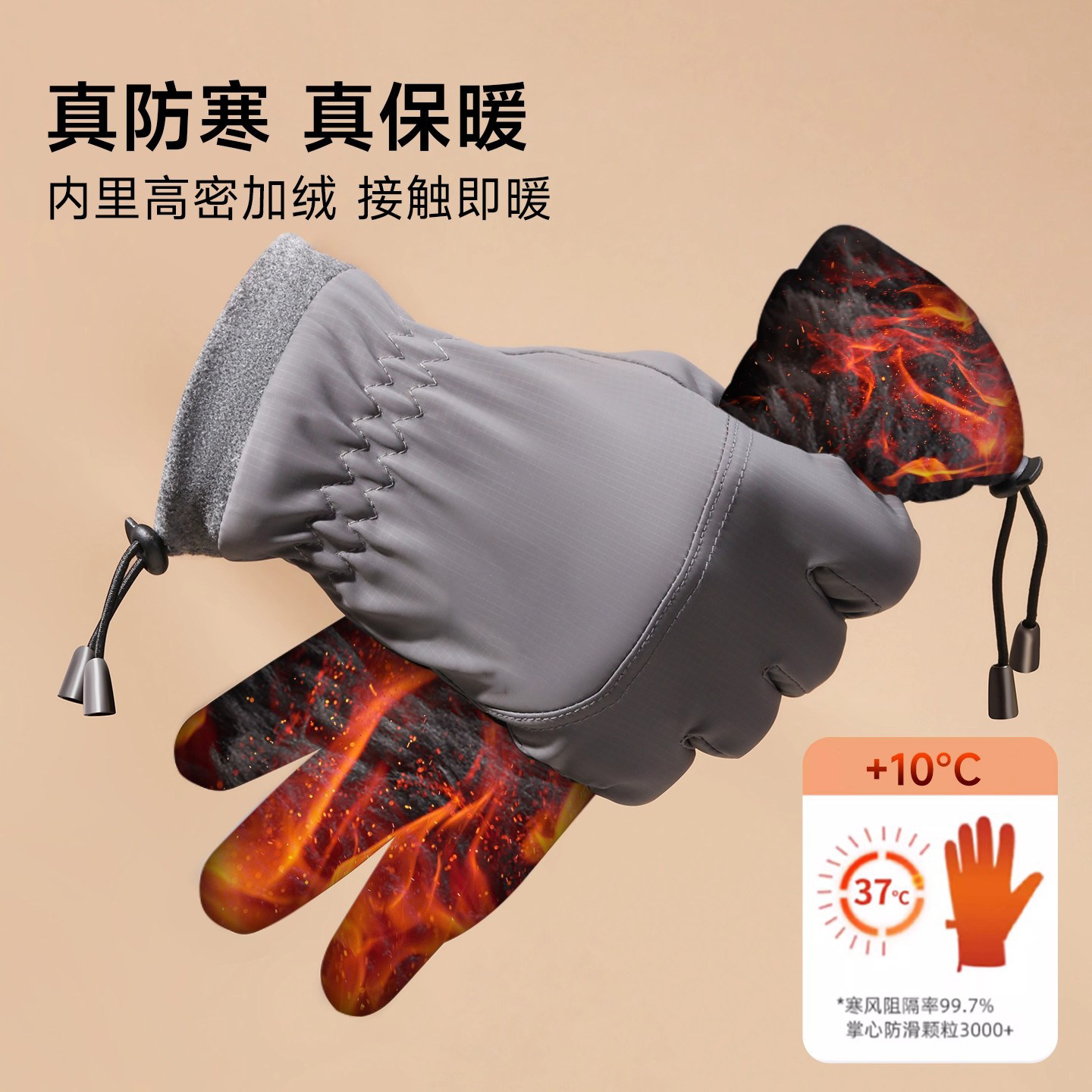 骆驼手套冬季男士户外跑步运动防寒薄绒保暖女可触屏防滑骑行手套