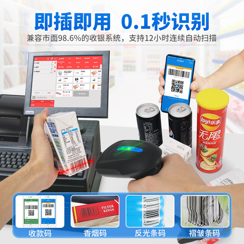 驰腾C981扫描枪微信支付宝收款扫码枪屏幕条码超市收银有线手持无线一二维码扫描器追溯药监码兽药农资店巴枪