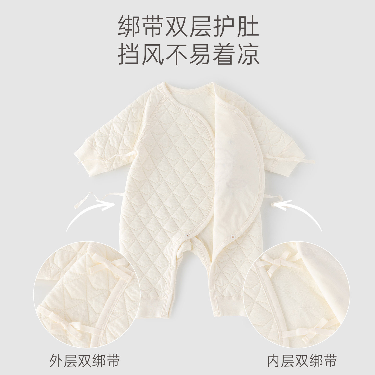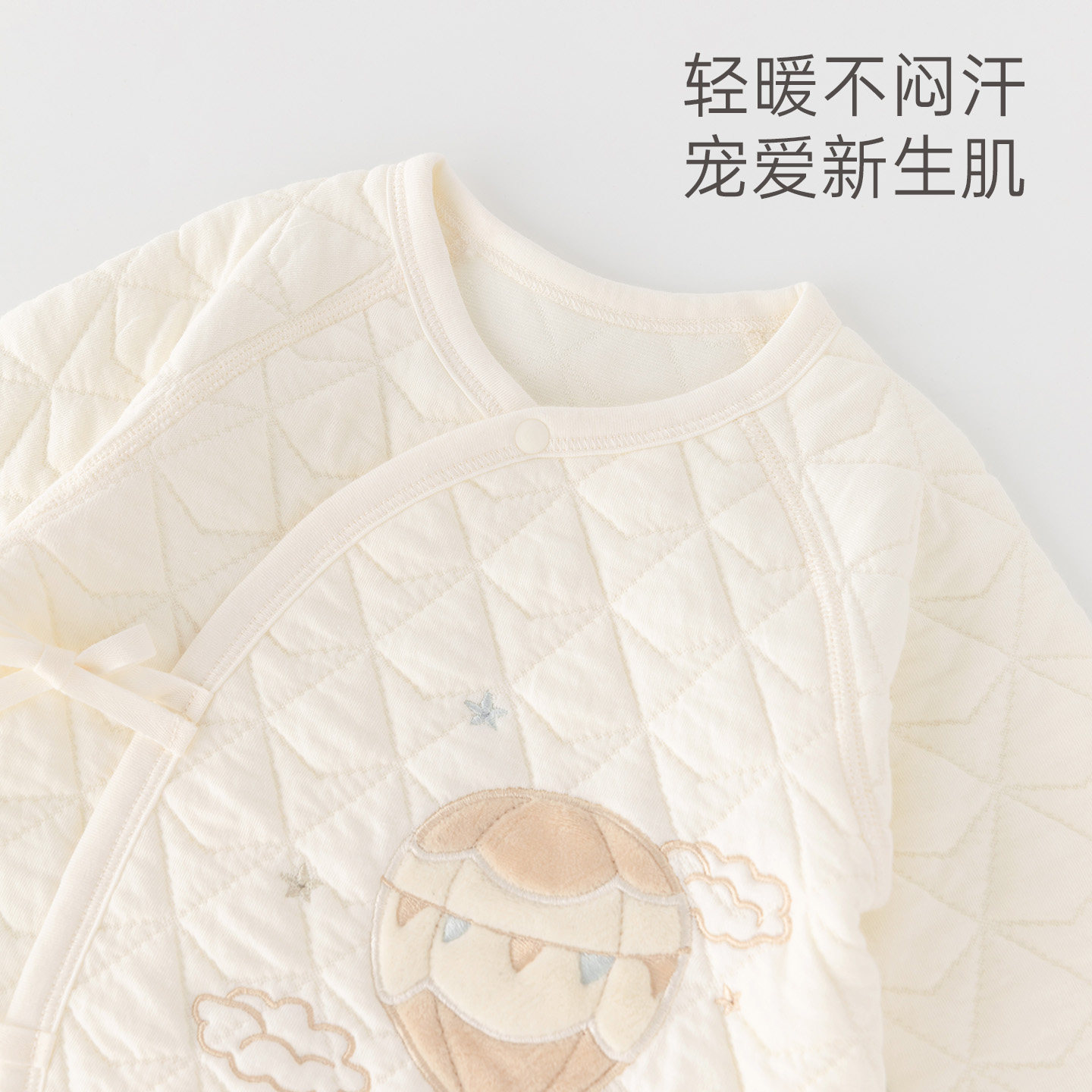 木生棉新生儿长袖连体衣冬季宝宝夹丝棉哈衣婴儿三层保暖和尚衣服