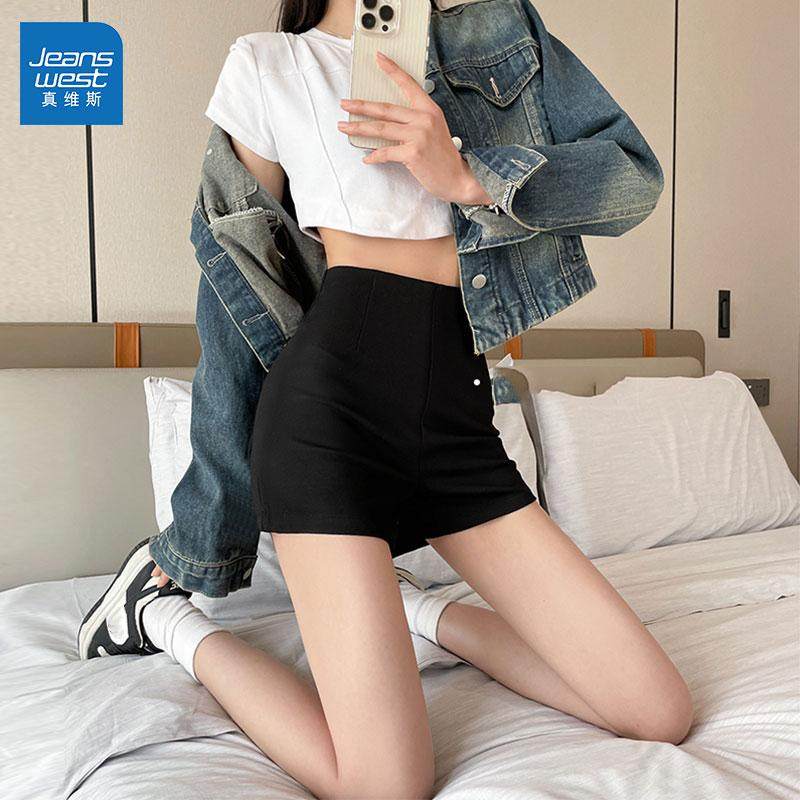 GL真维斯短裤女2025新款 夏季运动高腰提臀辣妹紧身裤黑色休闲裤
